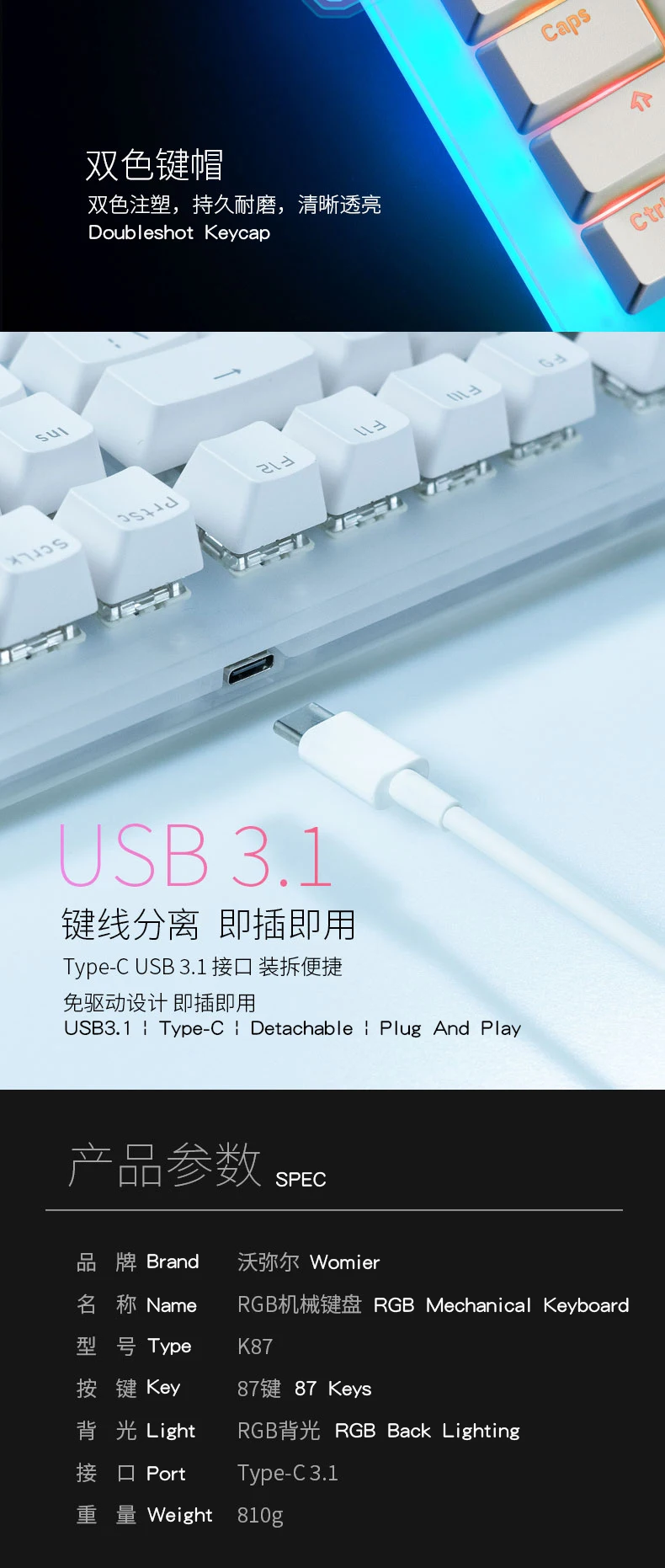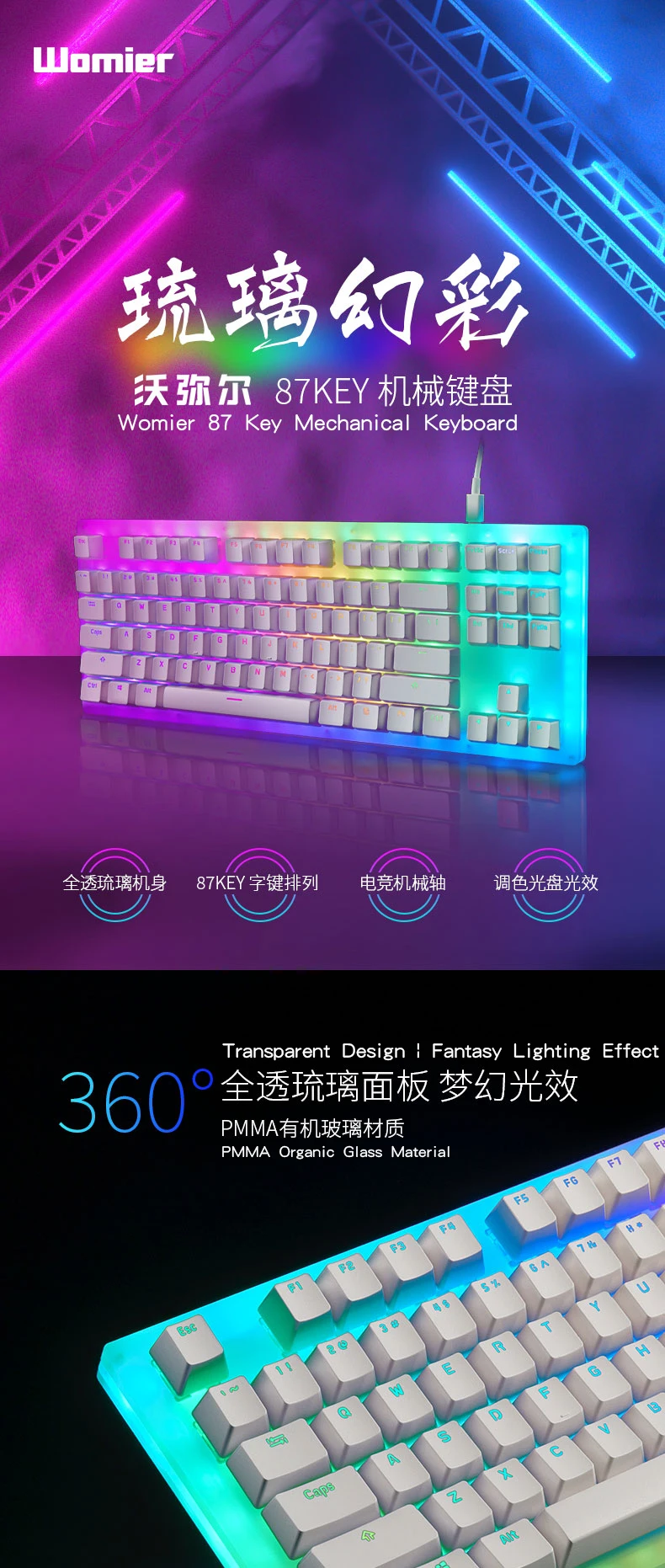 Comprar Womier-Teclado mecánico K87 de 87 teclas, carcasa PCB 80% 87 TKL, interruptor intercambiable en caliente, compatible con efectos de iluminación con interruptor RGB led