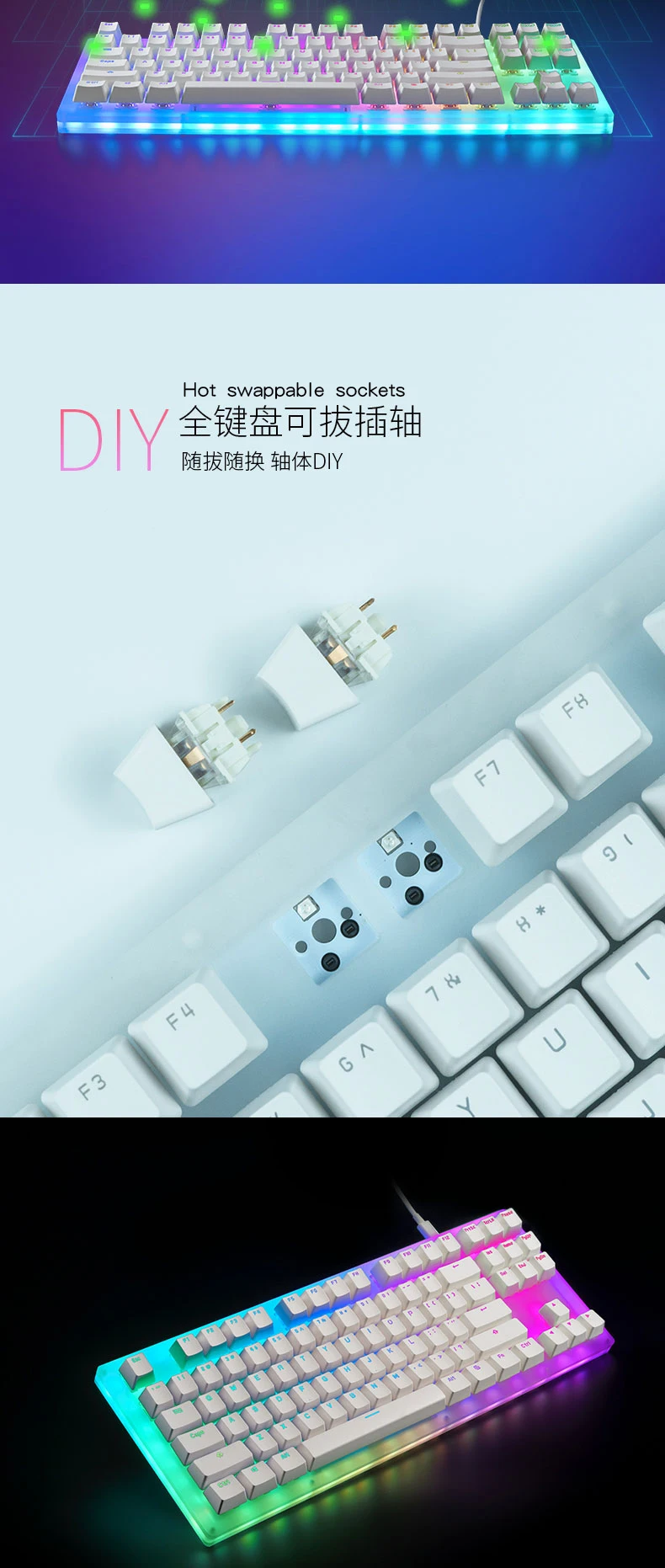 Womier 66 key Custom Mechanical Keyboard Kit 65% 66 PCB CASE cómo el interruptor intercambiable admite efectos de iluminación con interruptor RGB led$69.9