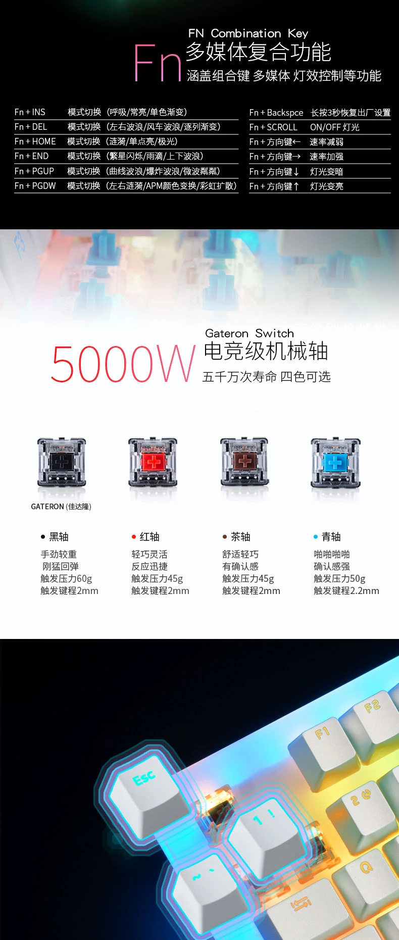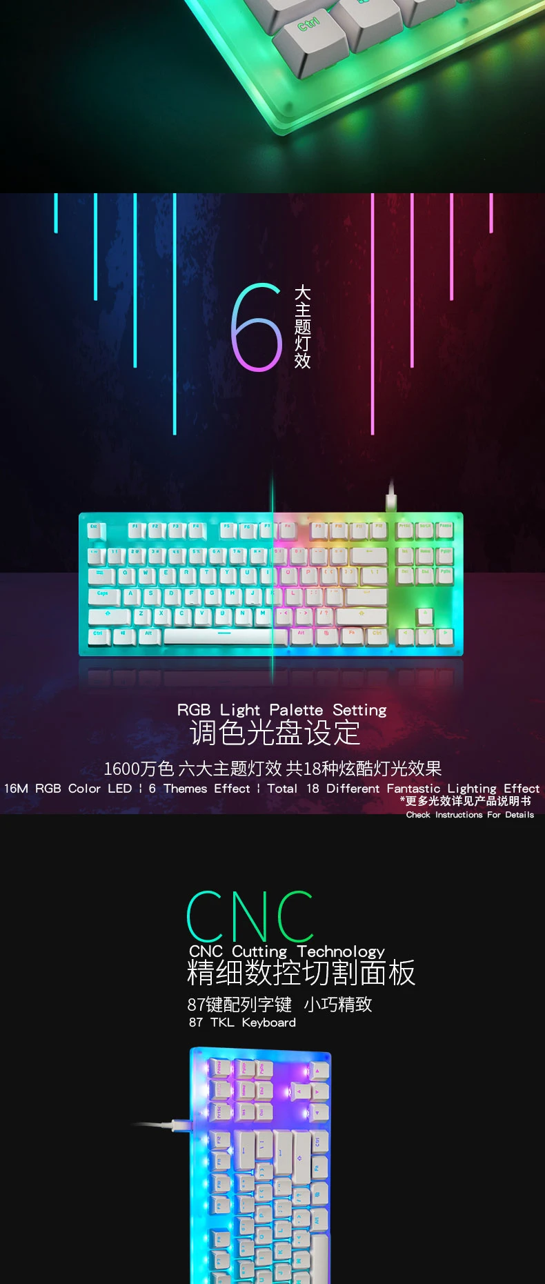 Teclado mecánico Thunderobot KL30 de modo dual 2,4g 80% efectos de iluminación interruptor RGB LED tipo magnético muñeca macro PBT keycap$76.9