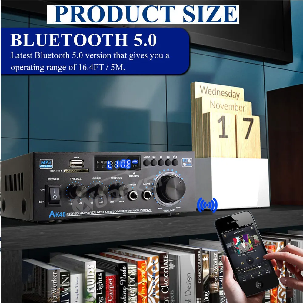 Amplificador estéreo bastante bueno. La entrada BT a través del teléfono inteligente funciona de maravilla, y la radio FM con la antena instalada también funciona perfectamente. Entrada de línea y entrada USB aún no probadas. Reemplacé un viejo receptor HiFi de marca de principios de los 90 con este dispositivo. Funciona muy bien. Gracias al vendedor, recomiendo mucho este dispositivo.