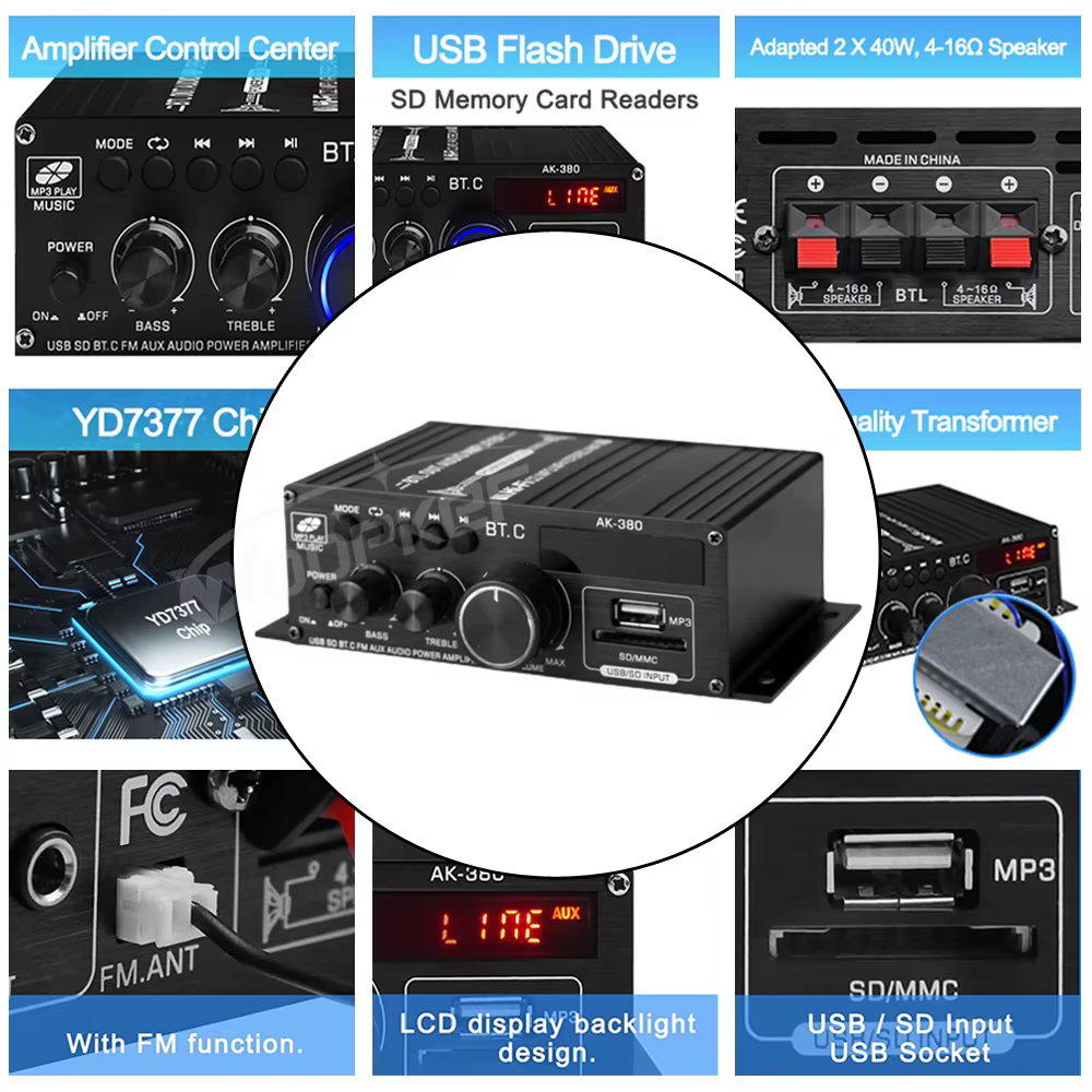 ✔ Compatible con 2 altavoces de 40 W de potencia nominal y 4-16 Ω.Viene con control remoto para ajustes de audio distantes, puede leer el disco U y la tarjeta de memoria, plug and play.