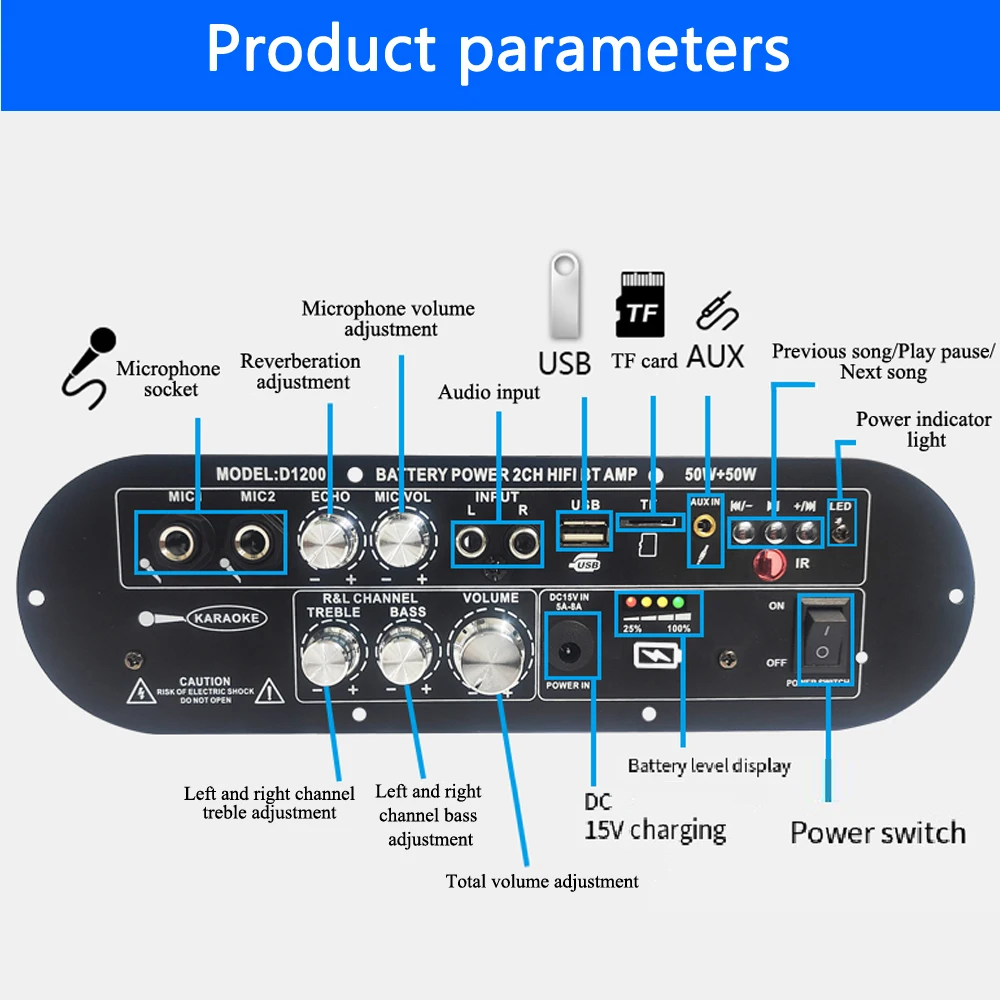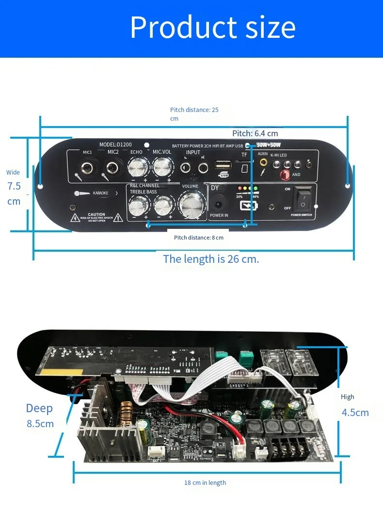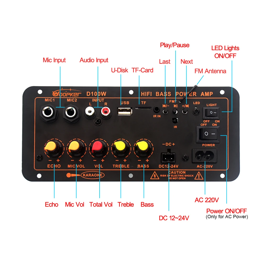 Input: Bluetooth/3.5mm AUX/U-Disk/TF/6.5mm MIC