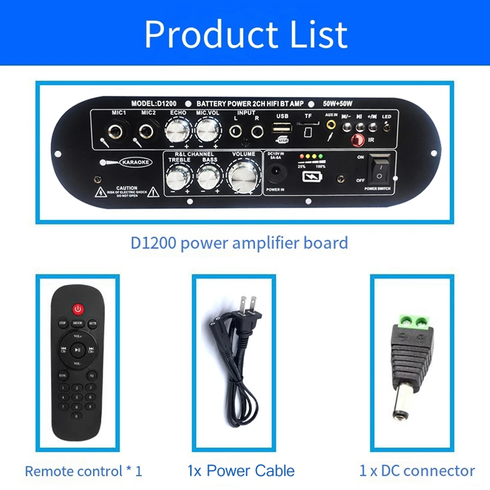 Comprar Woopker D1200 placa amplificadora de potencia 100W Bluetooth 5,0 amplificador de Audio Digital 2,0 canales Subwoofer soporte micrófono Dual MP3