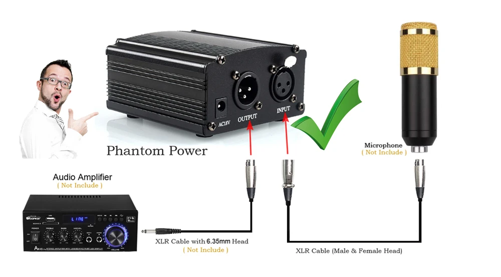 El micrófono llegó completamente equipado, en perfectas condiciones, sin un solo rasguño. Sin embargo, no está funcionando. Al conectar la tarjeta de sonido externa Dgnog UC22, no produjo ningún sonido. Con o sin alimentación phantom. Si lo conectas a la entrada de micrófono de un PC a través de un conector pequeño, captará todo el ruido del mundo pero aún así no producirá ningún sonido. Qué hacer con esto ahora - no lo sé. Desechalo o compra piezas del BM-800 y ensámblalo tú mismo... Es bueno que lo haya comprado para mí y no como un regalo para otra persona.