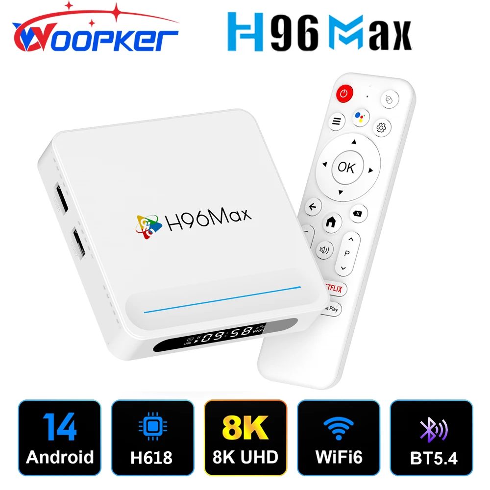 Comprar Woopker Smart Set Top Box H96 MAX H618 PLUS Android 14 Wifi6 BT5.4 8K HDR10 Control remoto con asistente de ratón reproducción multimedia