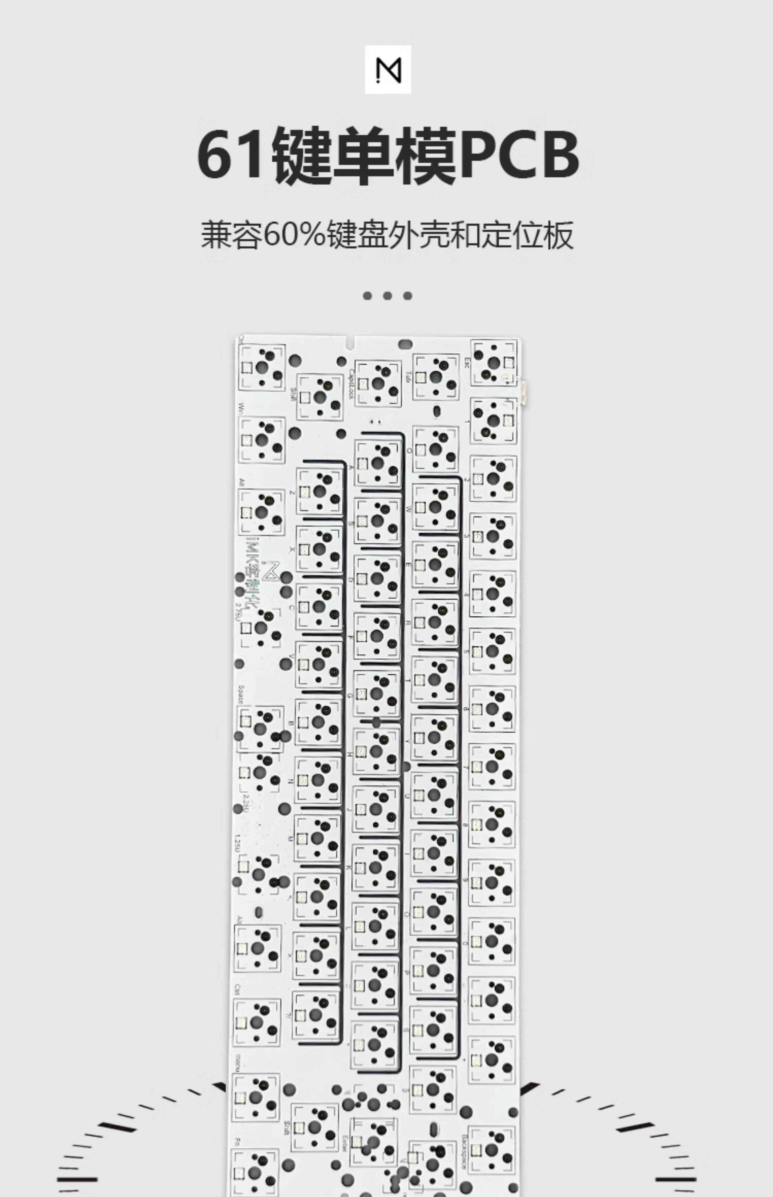 Tipo: PCB intercambiable en caliente Rgb de 61 teclas monomodo, revestimiento de PCB intercambiable en caliente Rgb de 61 teclas monomodo conjunto completo de placa de posicionamiento POM, juego completo de placa de posicionamiento FR4 de modo único de 61 teclas Rgb intercambiable en caliente