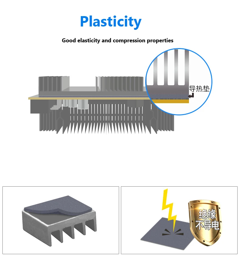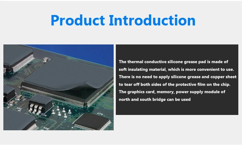1. Usando mejores materiales, tiene un mejor efecto de disipación del calor, y la conductividad térmica es tan alta como 15 W/m.K. Tiene mejor efecto de disipación del calor que otras marcas de almohadillas de silicona.