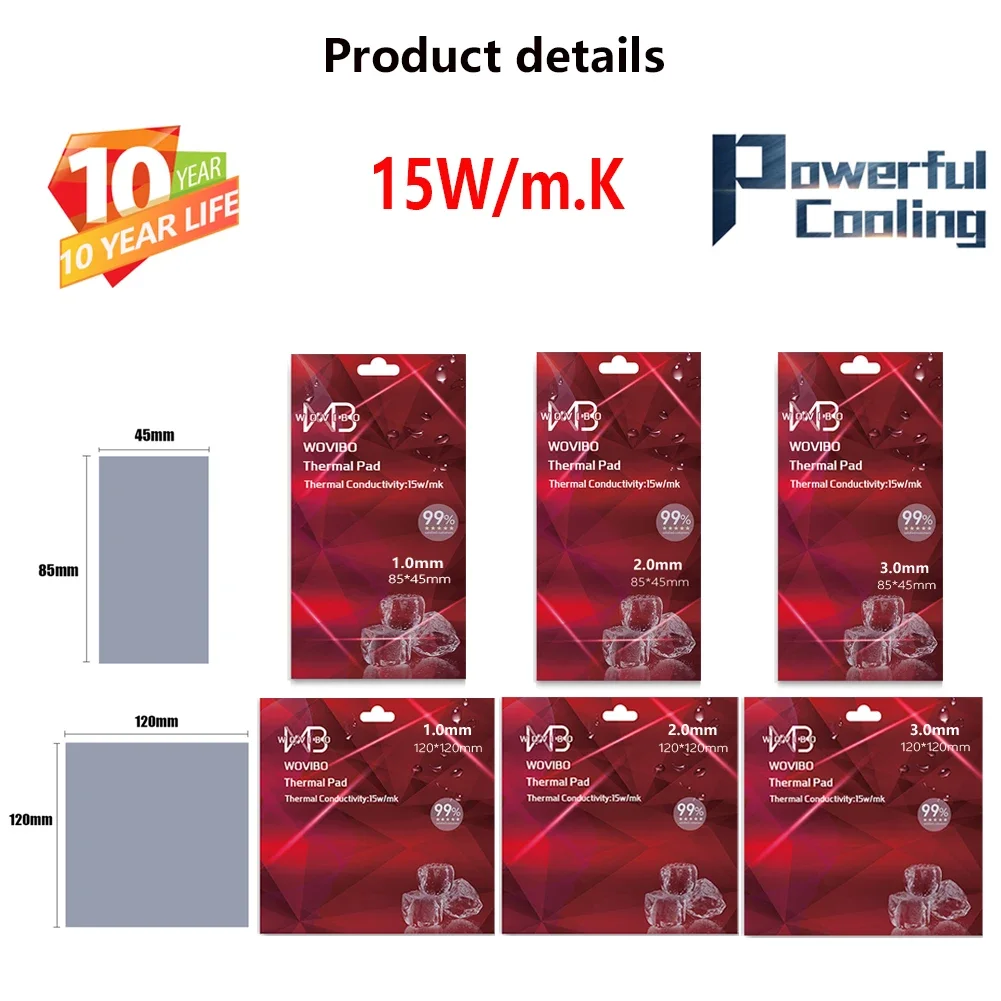 Comprar Wovibo-almohadilla térmica 15 W/m. k para CPU, GPU RAM M.2 Nvme SSD, placa base LED, disipación de calor de alto rendimiento, silicona, 120, 3mm