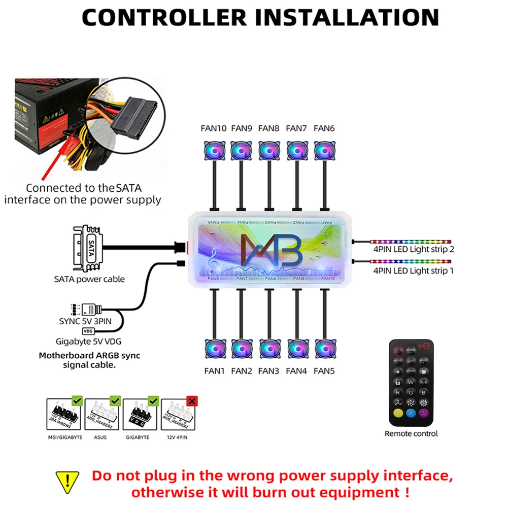 Nota: El controlador solo es adecuado para los ventiladores WOVIBO y COOLMOON, póngase en contacto con el servicio al cliente para confirmar el pedido sobre los fanáticos de terceros.