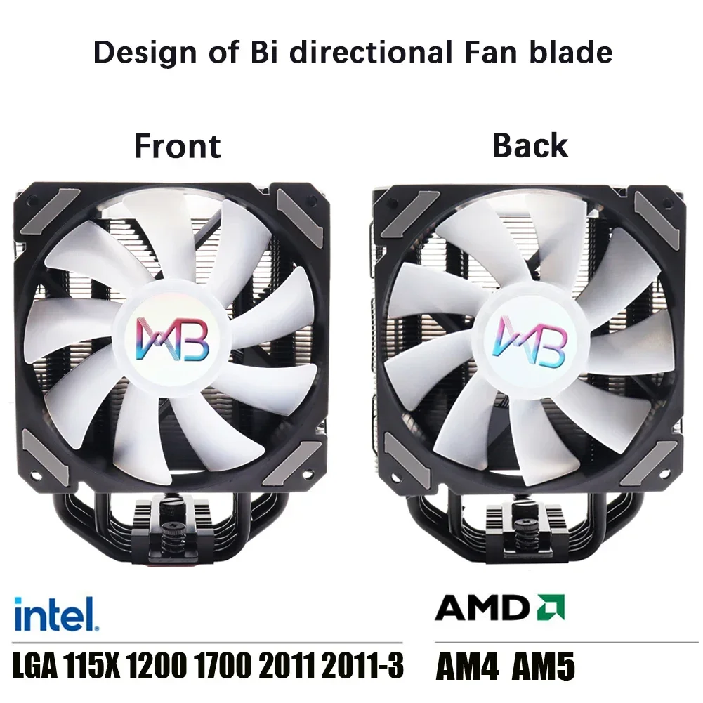 Comprar Wovibo-Ventilador enfriador de CPU, 6 tubos de calor de 120mm, para radiador Intel 1150, 1151, 1155, 1700, X79, X99, AMD AM4, AM5