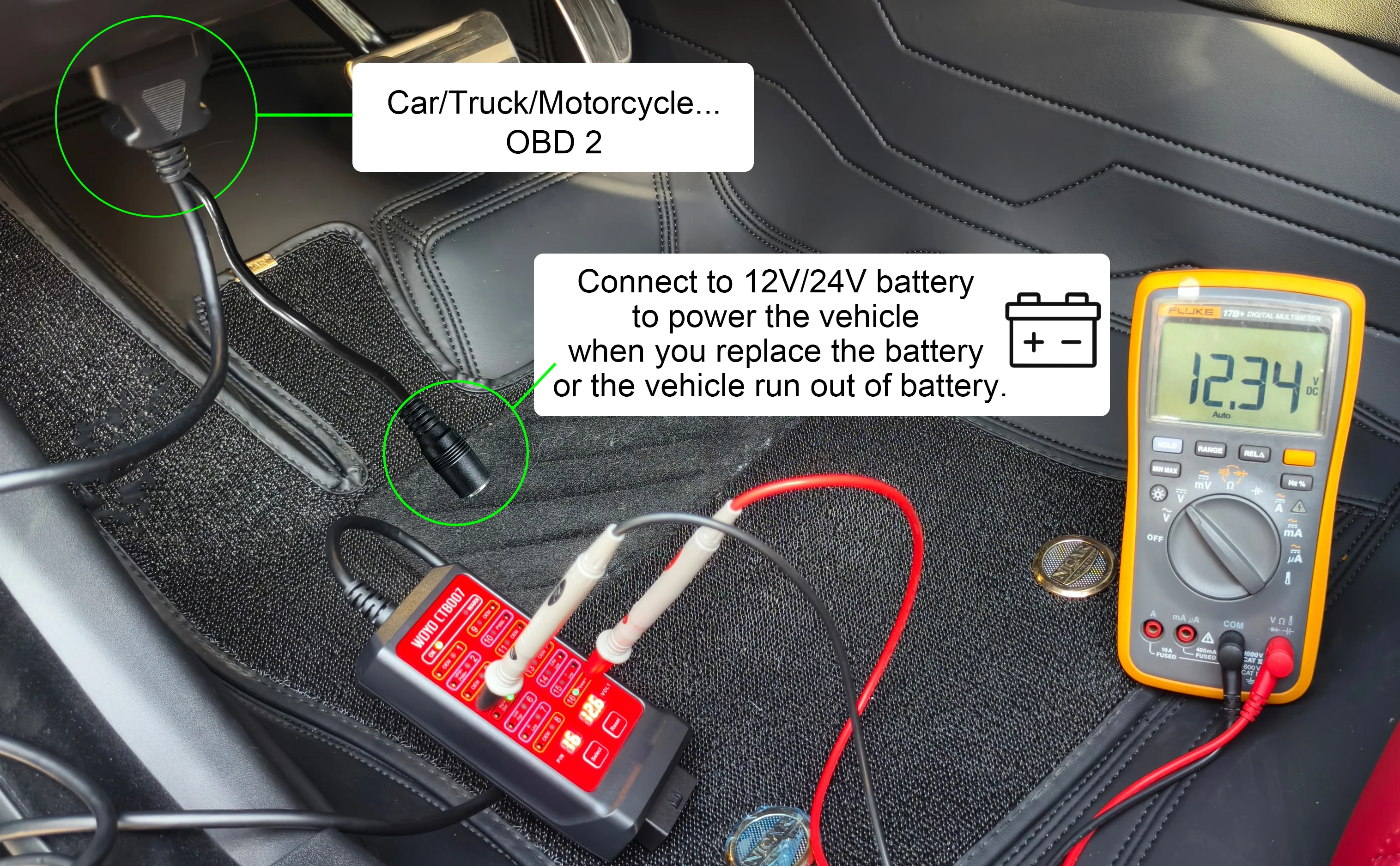 2.Cuando tu coche no tiene batería, pero quieres leer los datos del coche,