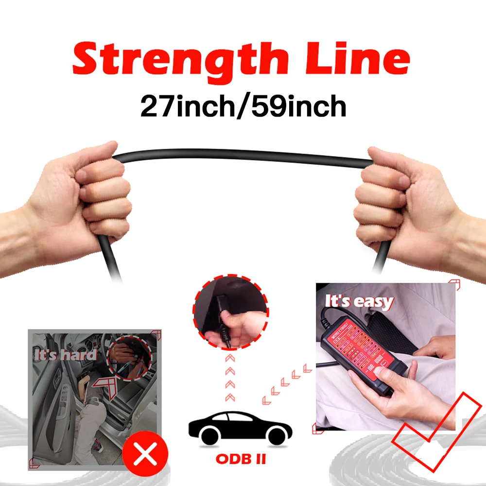 * Se utiliza incluso con un cable de extensión OBD de 59 pulgadas, lo que le permite probar el problema del automóvil con calma en un lugar cómodo.
