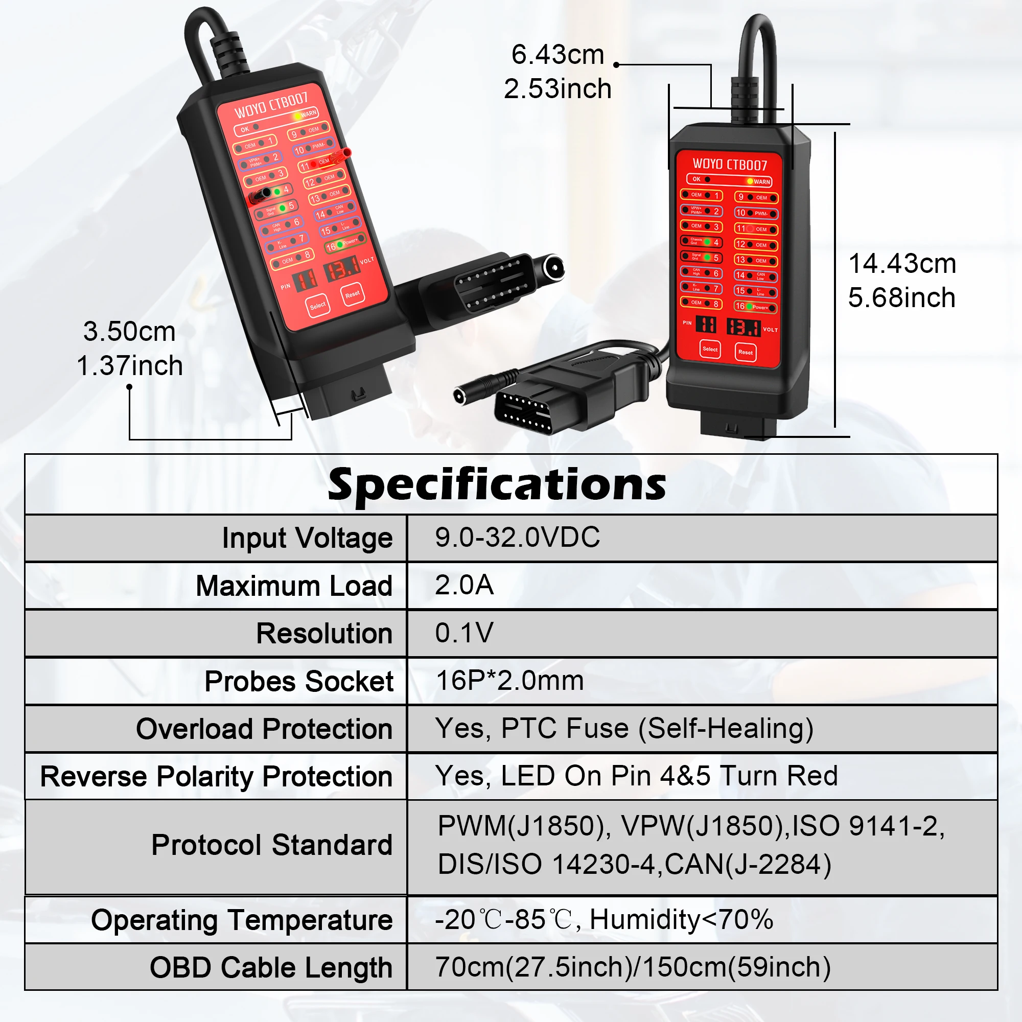 Probador CAN WOYO 12V/24V 27 pulgadas/59 pulgadas CTB007 en banco