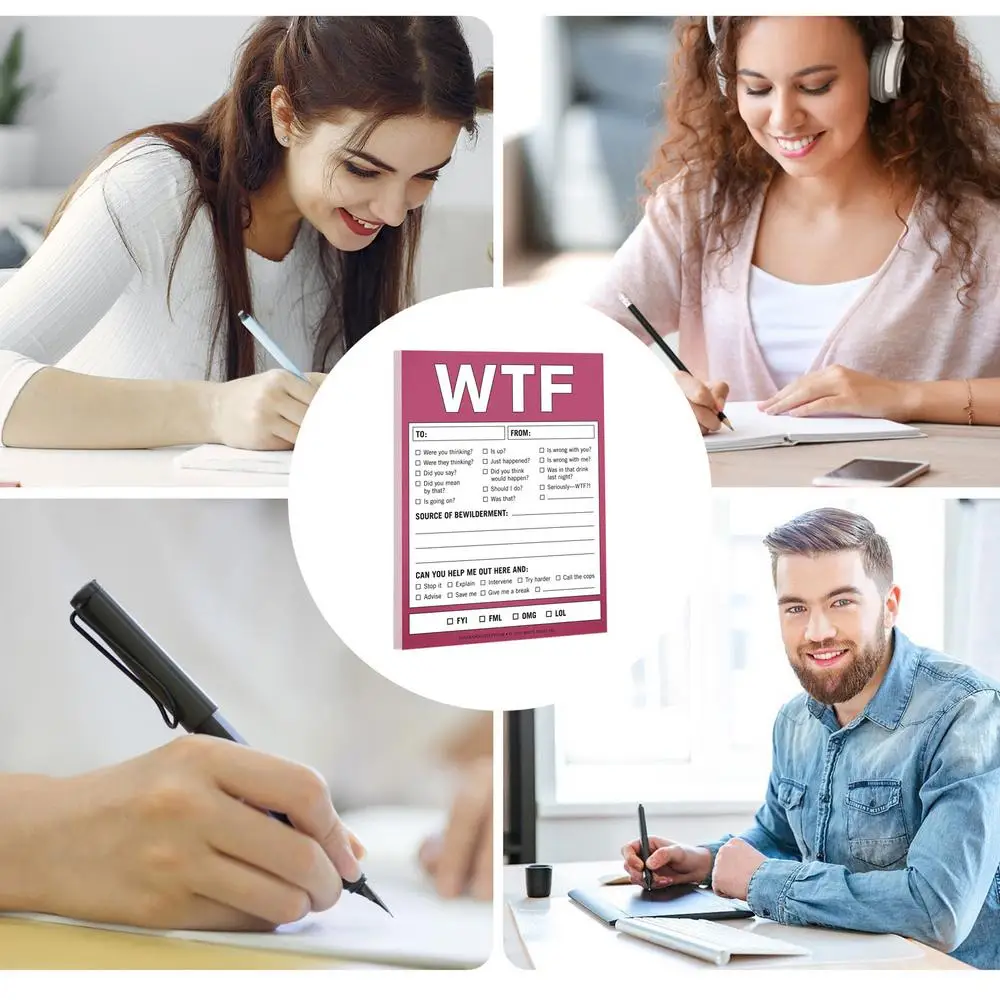 2. Varias funciones: con 50 formularios de notas de lista de 5,25x4 pulgadas, nuestras notas WTF ofrecen mucho espacio de escritura para que sus emociones se liberen. Exprese sus pensamientos sin temor a quedarse sin espacio de nuevo.