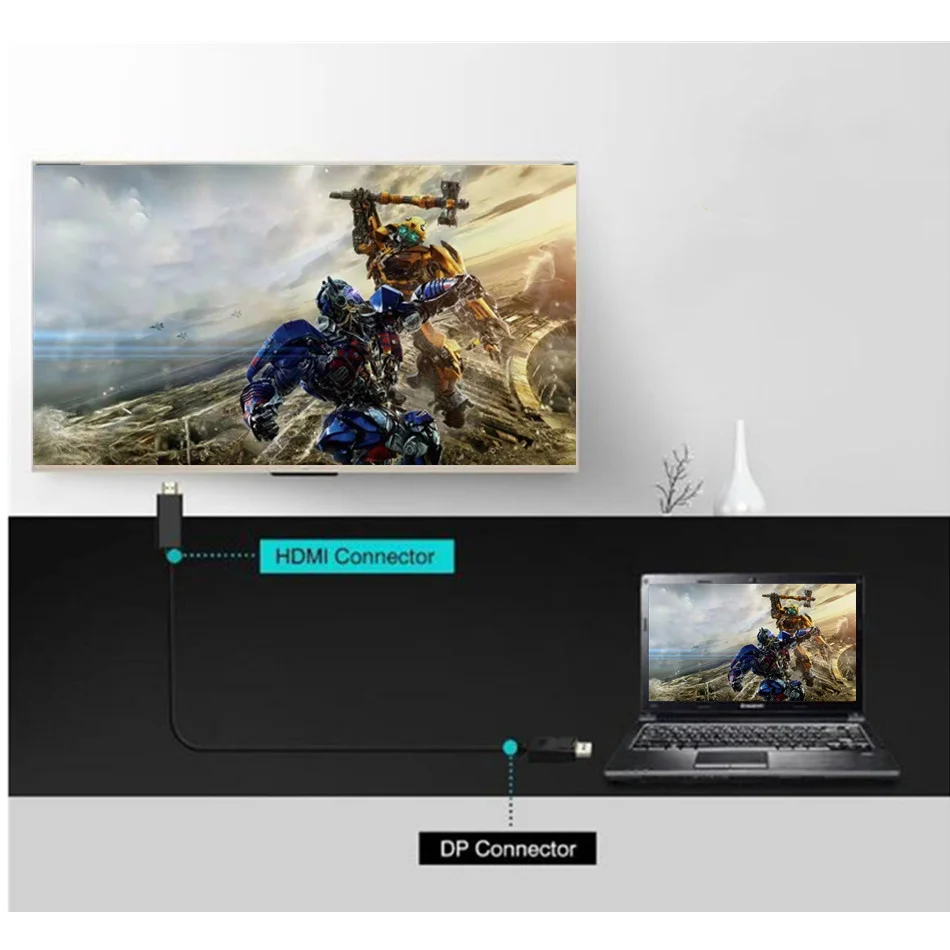 Nota:No admite la transmisión de señal bidireccional, solo se convierte de fuente DisplayPort a pantalla HDMI, no compatible con el puerto USB.