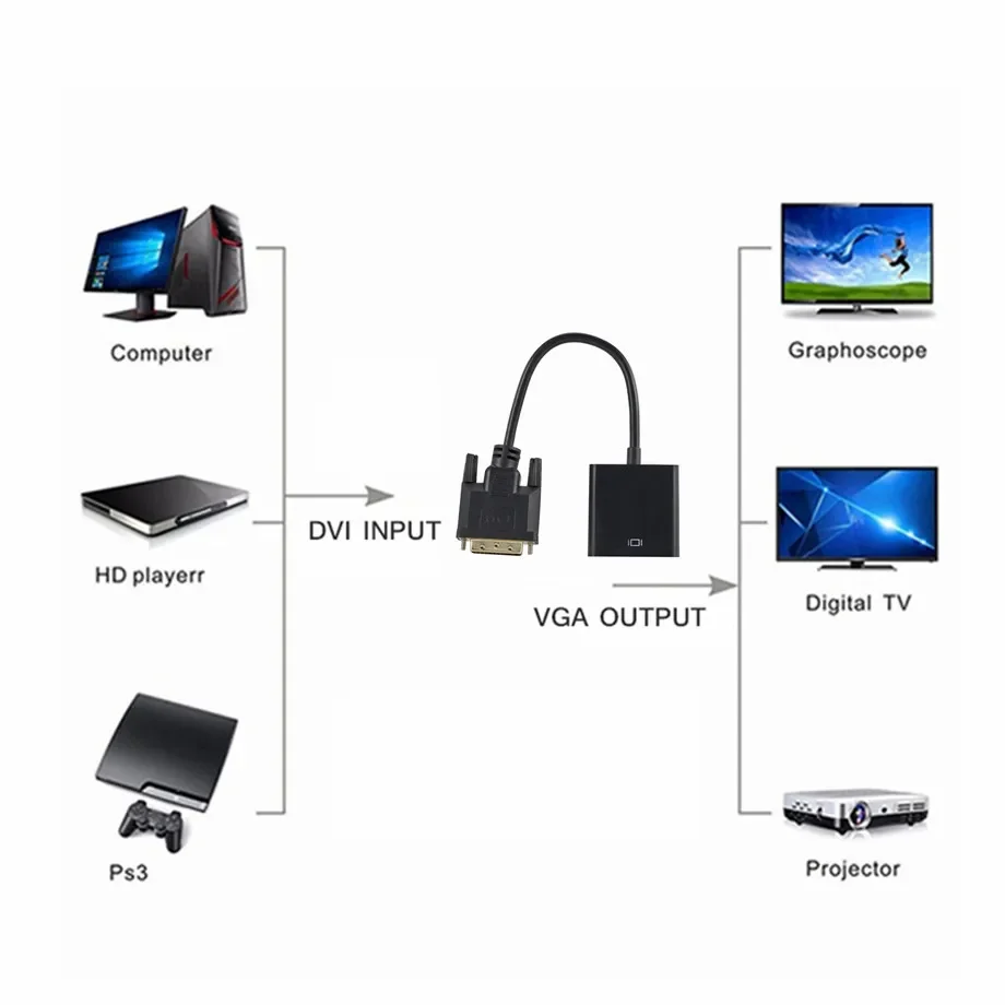 Comprar WvvMvv-adaptador DVI a VGA, convertidor de Cable de vídeo de 24 + 1 25 pines a 15 Pines, 1080P, DVI-D, para Monitor de ordenador y PC