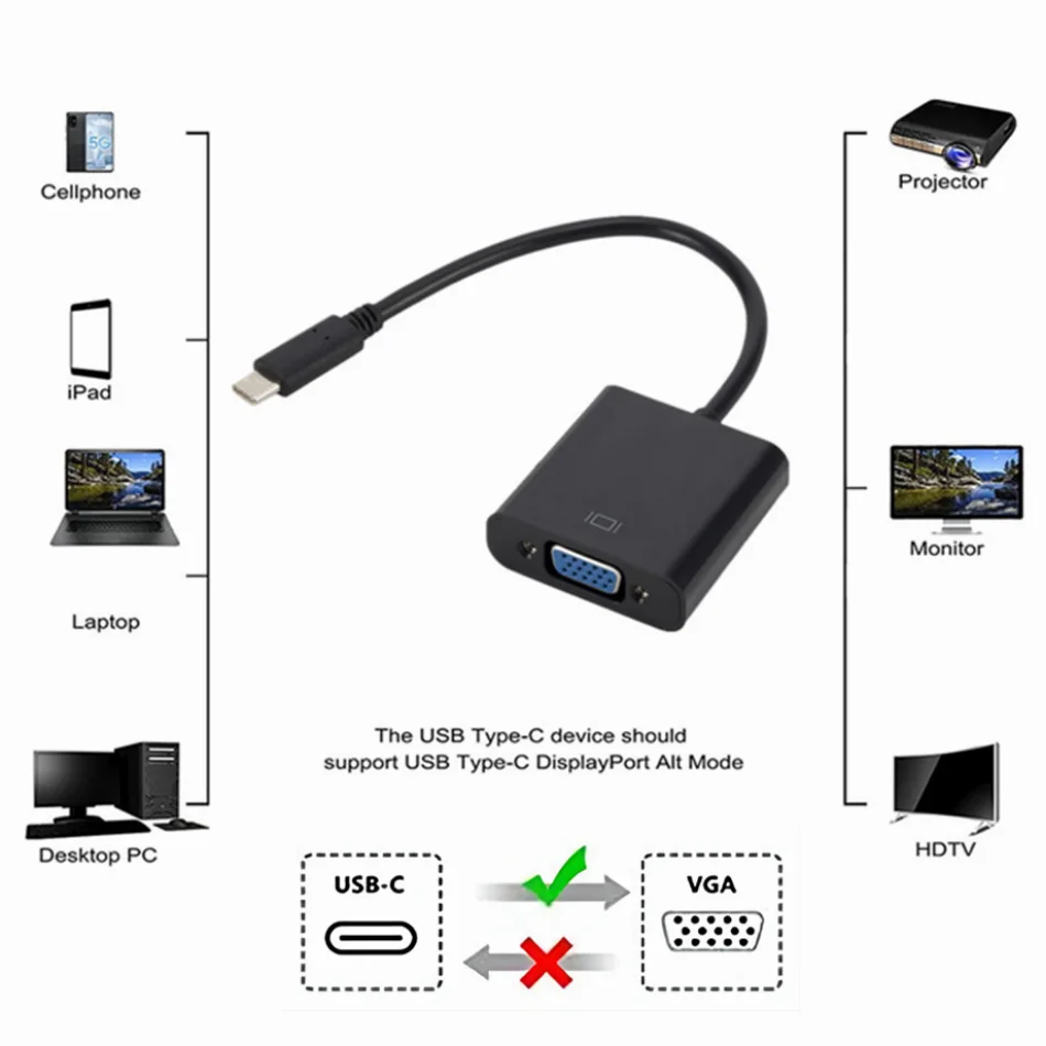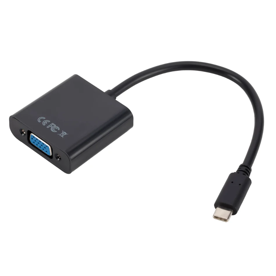 Especificaciones: Conector 1: USB 3,1 tipo C Conector 2: adaptador VGA Clasificación del Cable: USB 3,1 de alta velocidad, velocidad de transferencia de datos de hasta 10Gbps. Enchufe: acero niquelado, terminales chapados en oro 3U Material exterior del molde: PVC Peso del producto: 30g