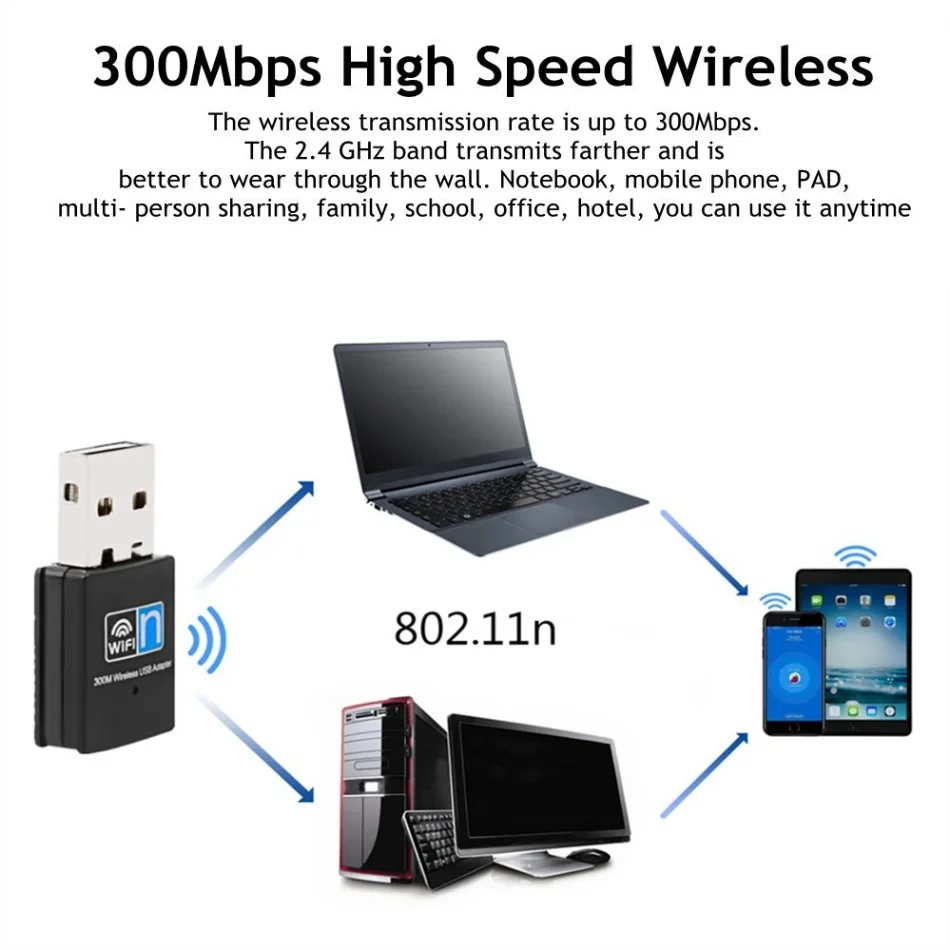 Dongle USB Wifi inalámbrico de 300Mbps/Adaptador USB inalámbrico/tarjeta de red inalámbrica
