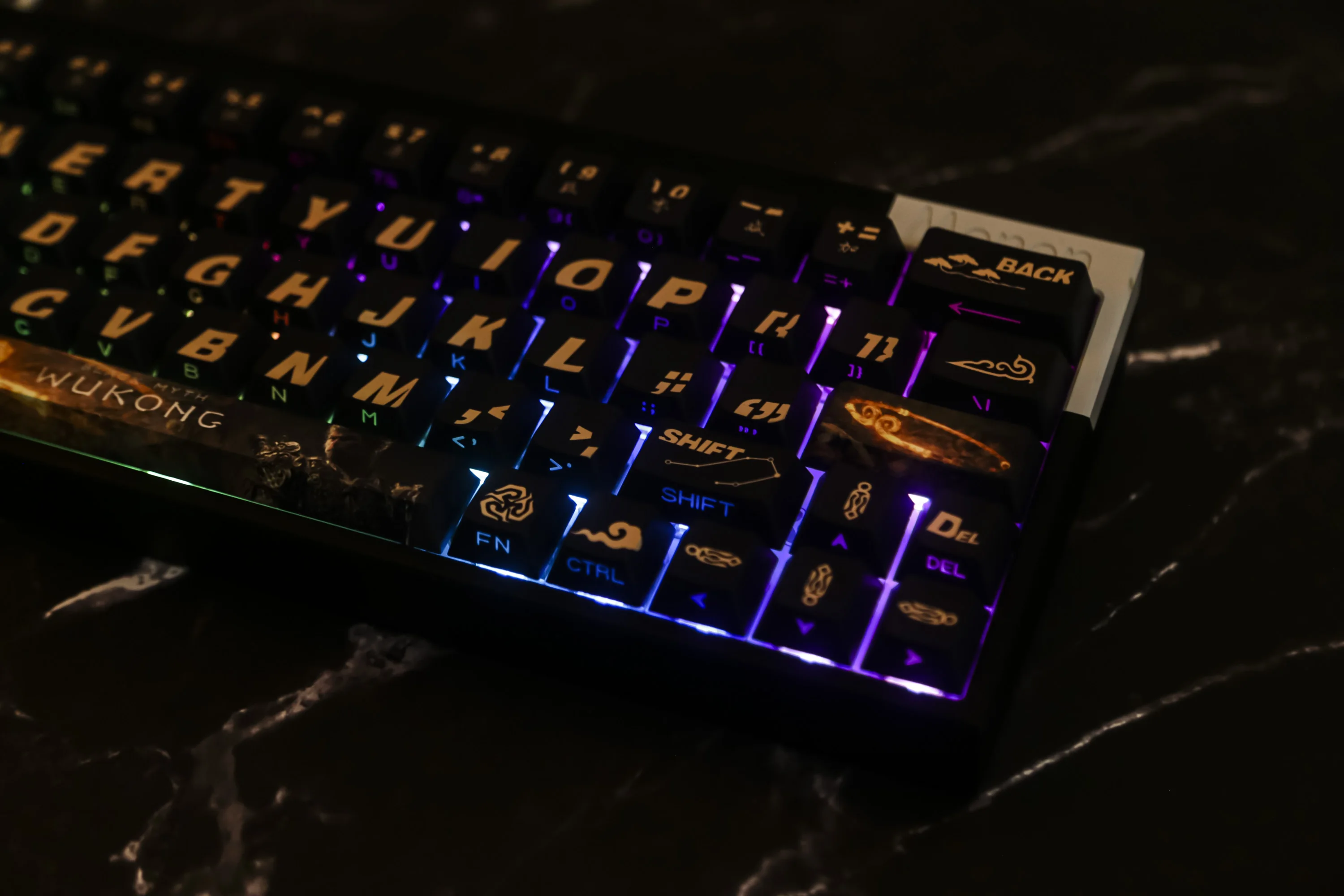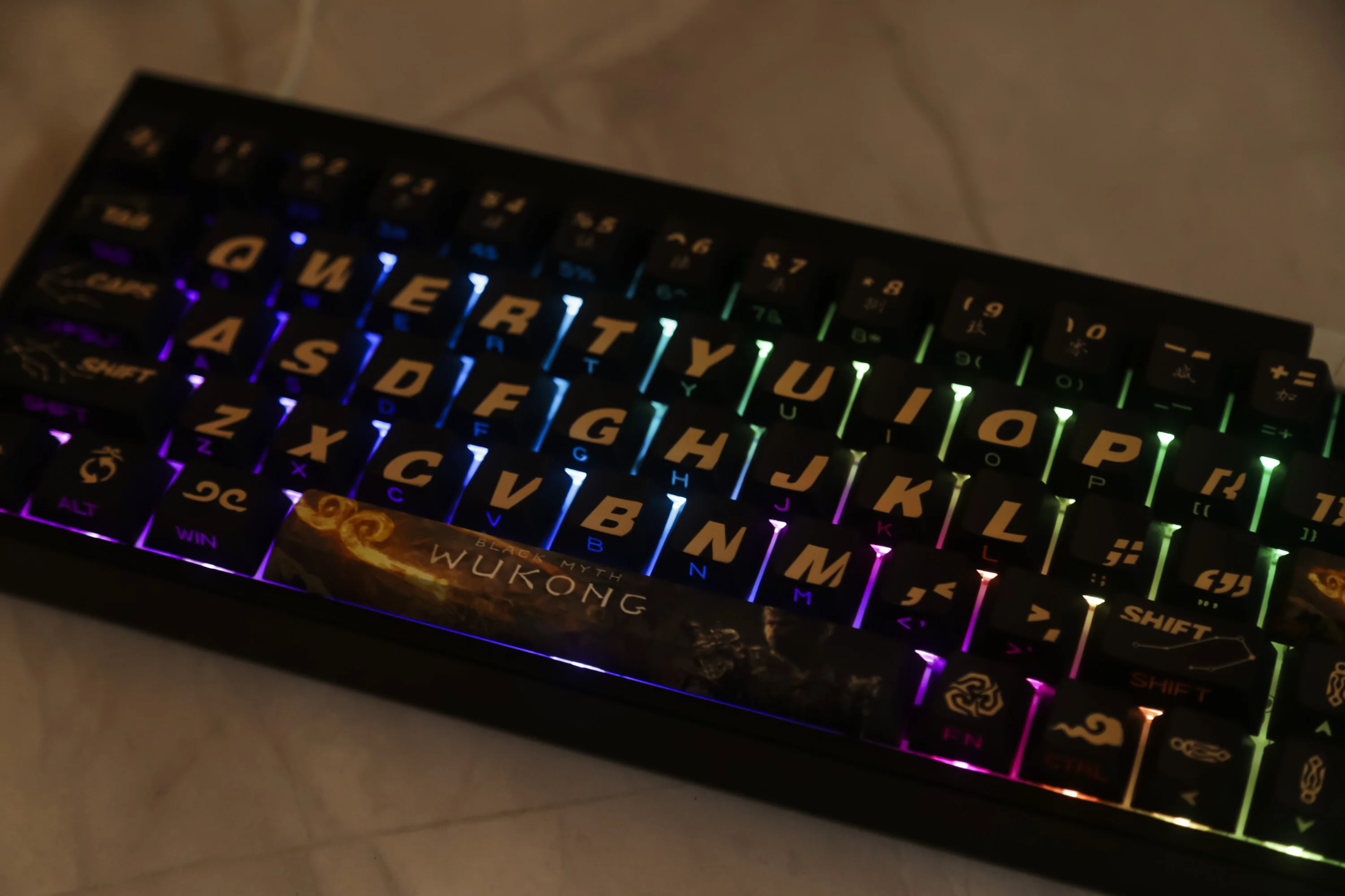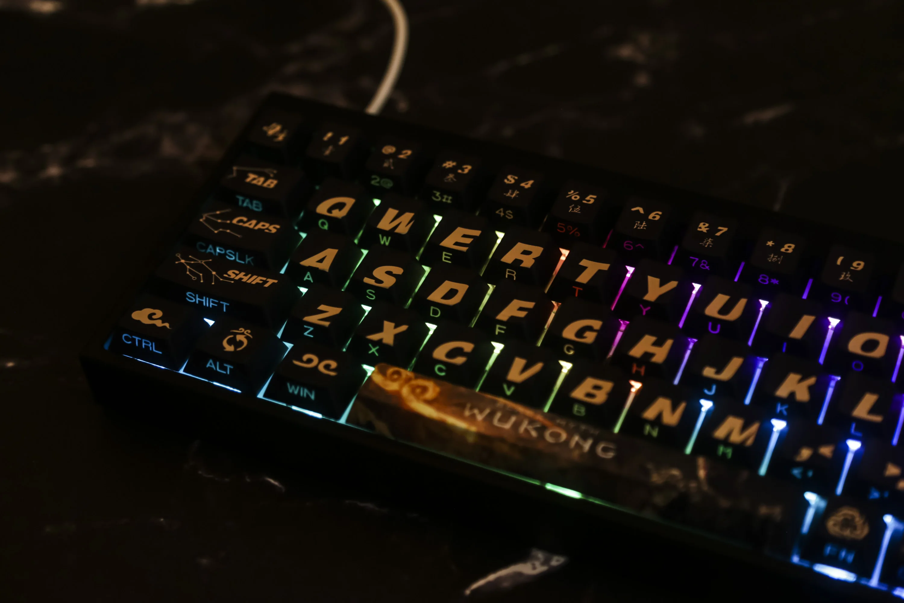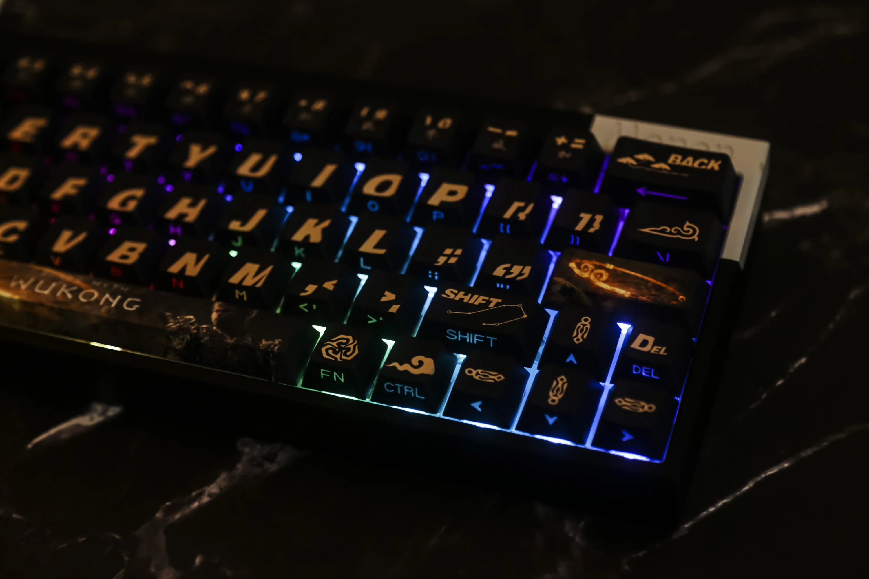 Comprar Wyth Wukong teclas negras, PBT, perfil de cereza, retroiluminación, contorno, impresión lateral, Teclado mecánico, periféricos de juego
