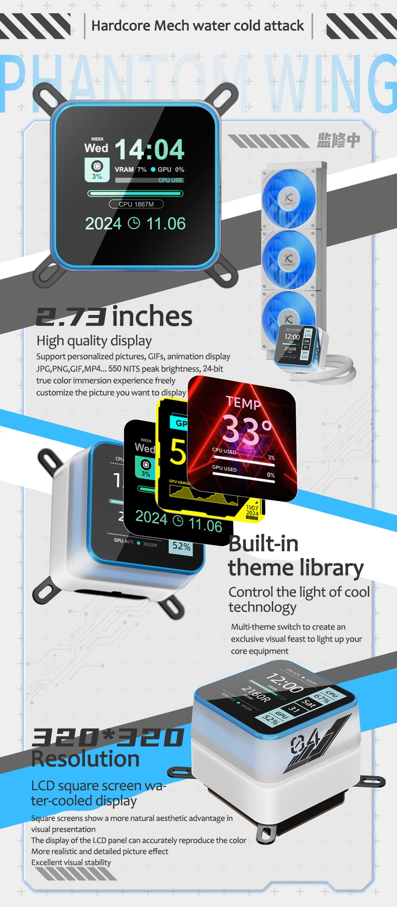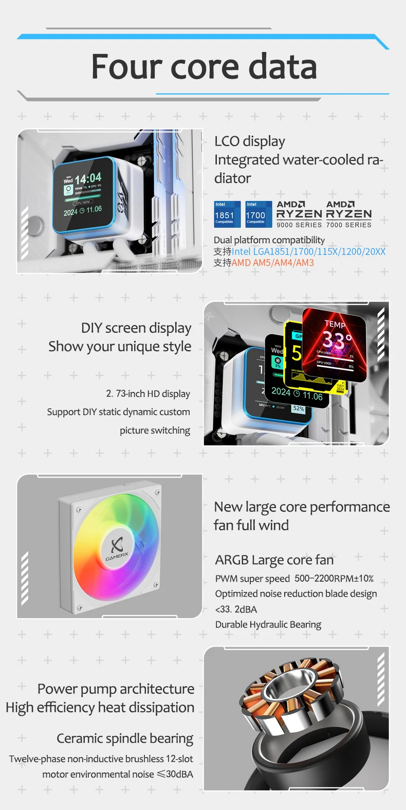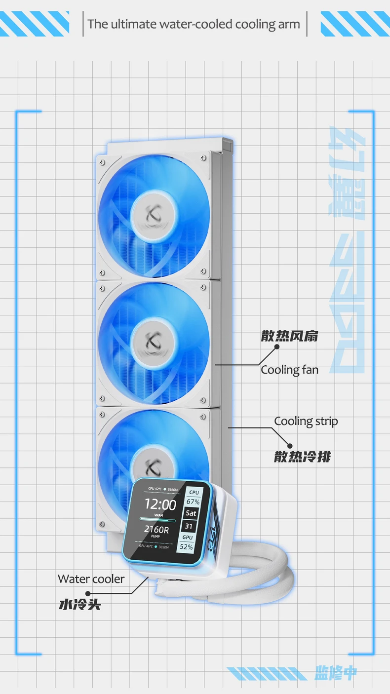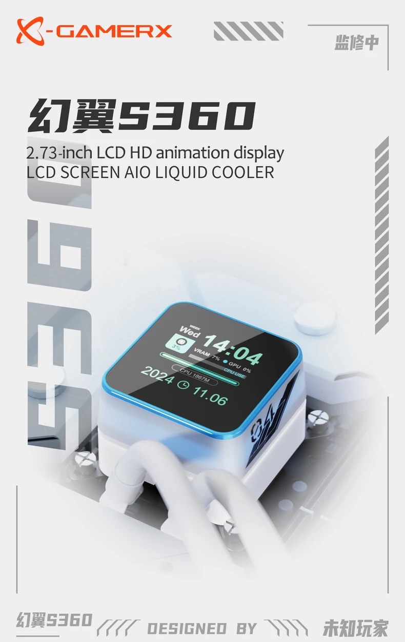X-GAMERX HuanYi ARGB Radiador de refrigeración por agua todo en uno/soporte LGA1851/1700/115X/1200/AM5/AM4/pantalla LCD magnética de 2,3 pulgadas