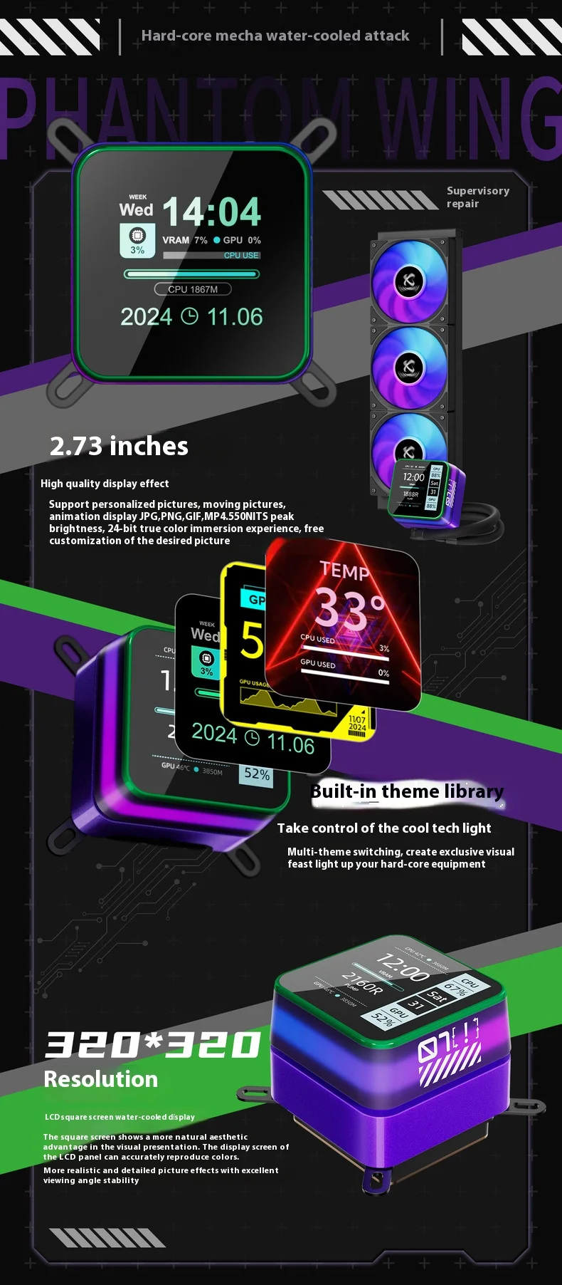 Comprar X-GAMERX S360 blanco/negro ARGB pantalla LCD todo en uno AIO líquido COOLE radiador de refrigeración por agua 5V 3PIN ARGB ventilador CPU enfriador de líquidos