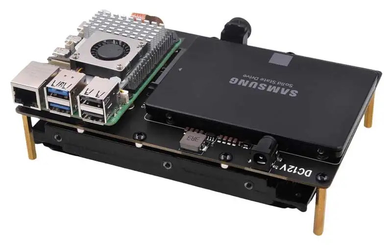 [] Utilice un adaptador de corriente CC 12V para alimentar tanto X1008 como Pi5 a través de DC5521Jack. No se necesita fuente de alimentación adicional para Pi5 (tenga en cuenta que el voltaje requerido para el disco duro de 3,5 pulgadas es de 12V)
