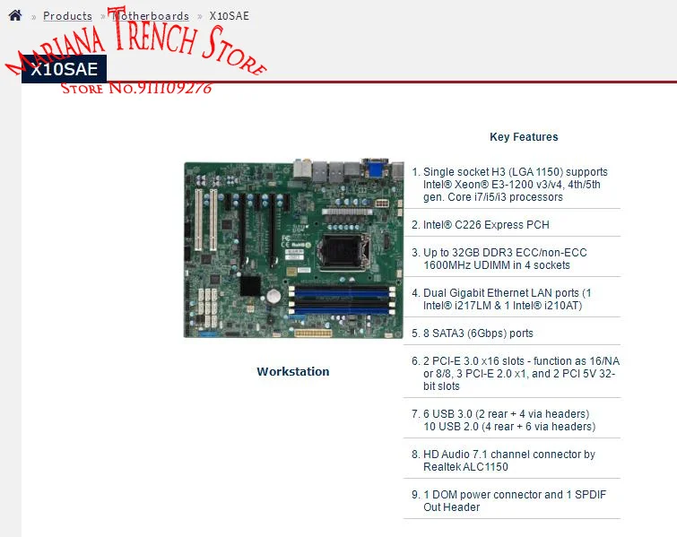 Comprar x10sae para placa base Supermicro LGA1150 E3-1200 v3/v4 4.a/5a generación. Procesadores Core i7/i5/i3 Puerto Gigabit dual DDR3