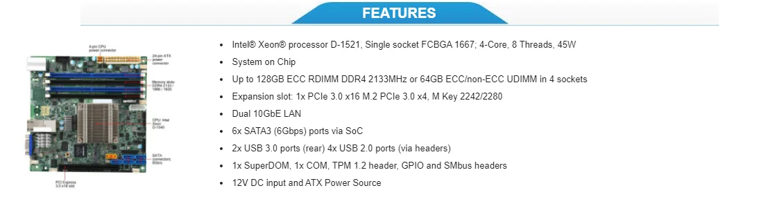 X10SDV-4C-TLN2F X10SDV-TLN4F para placa base de servidor SUPERMICRO Intel Xeon D-1521 Mini ITX