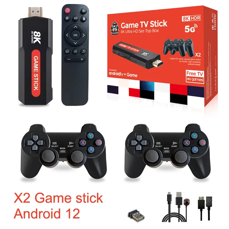 Comprar X2 Videojuego stick Android 12 8K TV BOX sistema Dual WiFi 4G/5G controlador inalámbrico Retro 10000 juegos Q9 para niño regalo de Navidad