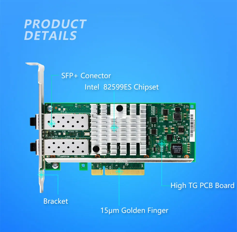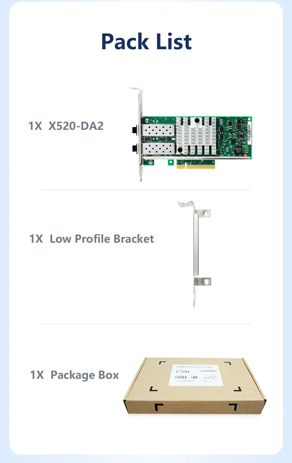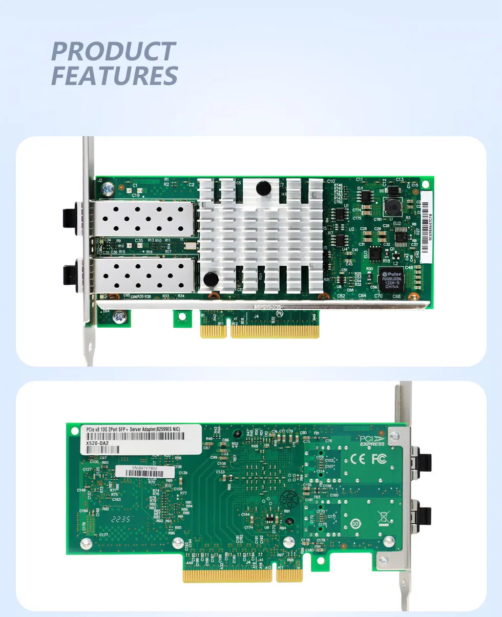 Comprar X520-DA2-Chipset Intel 82599ES PCIe 2,0x8 10G, tarjeta de red de servidor Ethernet, puerto Dual, conector SFP +, 3 años de garantía