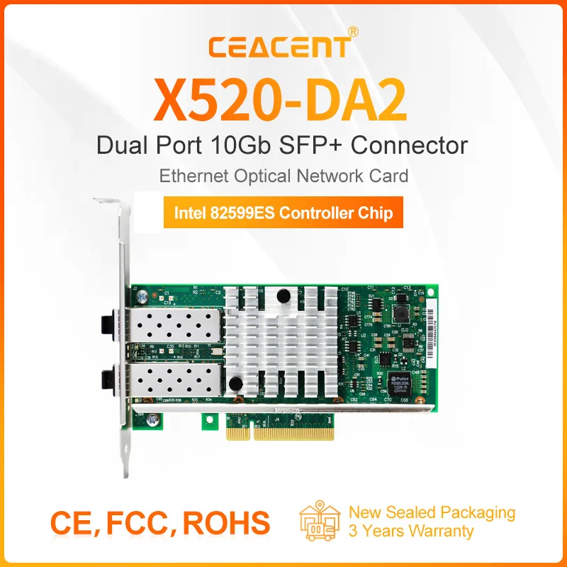 Comprar X520-DA2-Chipset Intel 82599ES PCIe 2,0x8 10G, tarjeta de red de servidor Ethernet, puerto Dual, conector SFP +, 3 años de garantía