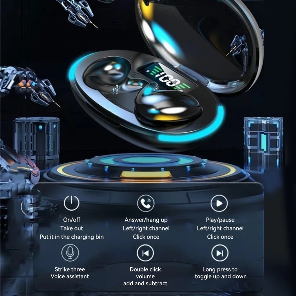 2.Diseño del modo de suspensión:Estos auriculares estéreo activan el modo de suspensión tocando cuatro veces el auricular derecho, asegurando que ningún zumbido interrumpa su paz.Este modo evita toques accidentales y detiene que las luces indicadoras parpadeen, ofreciendo una experiencia musical fluida y silenciosa.Las suaves almohadillas y tapas de silicona brindan comodidad a quienes duermen de lado.