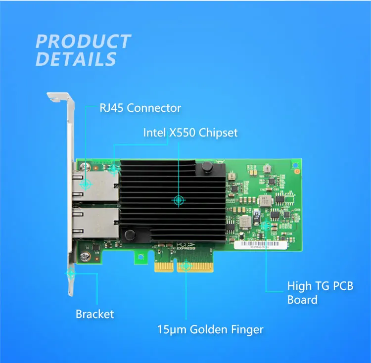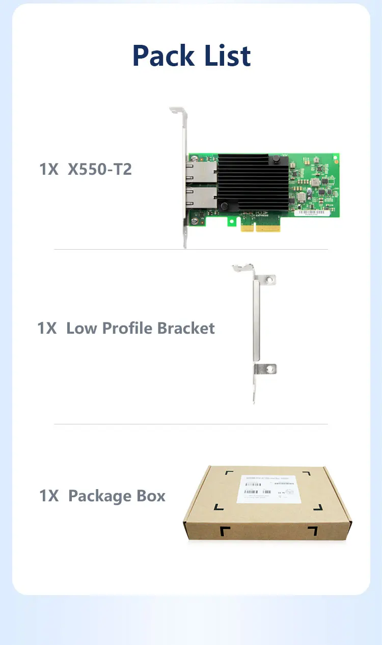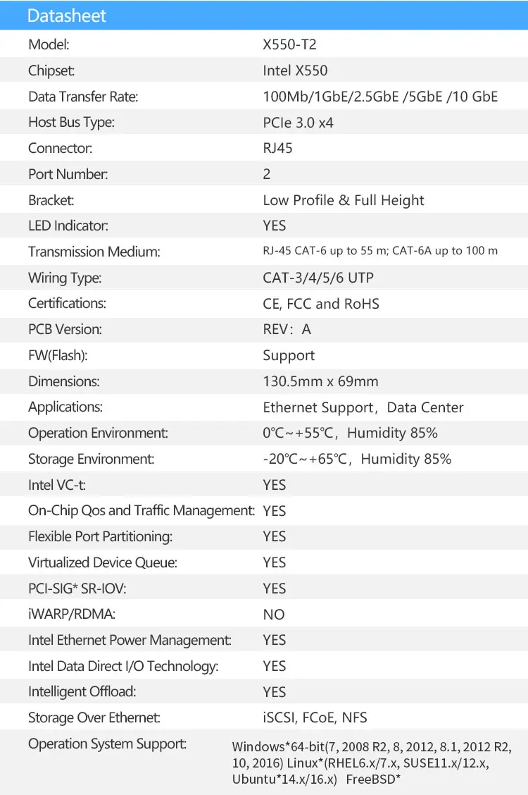Comprar X550-T2-tarjeta de red PCIe 3,0x4, 10G, 2 puertos, RJ45, 10Gbase-T, NIC, Intel X550AT2, Chipset 1GbE/2.5gbe/5GbE/10GbE