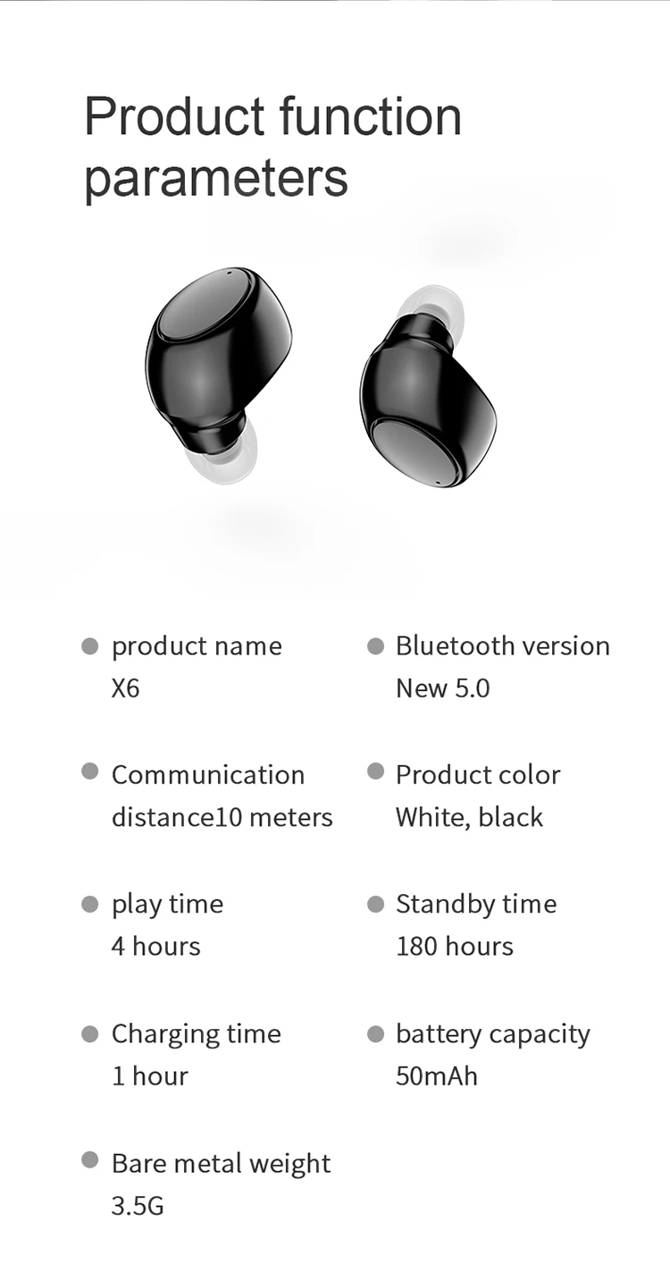 X6 Mini-Auriculares deportivos compatibles con Bluetooth 5,0, cascos inalámbricos con micrófono, manos libres para todos los teléfonos inteligentes