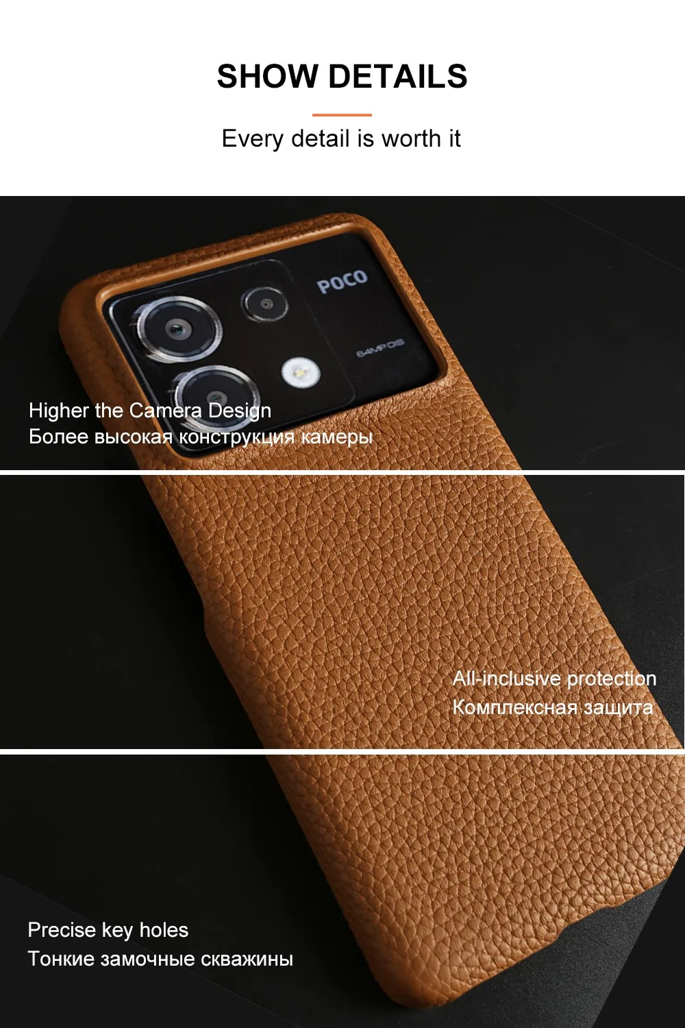 For POCO F4 GT leather case was crafted with premium Cowhide leather and microfiber lining, offers soft nature feel.