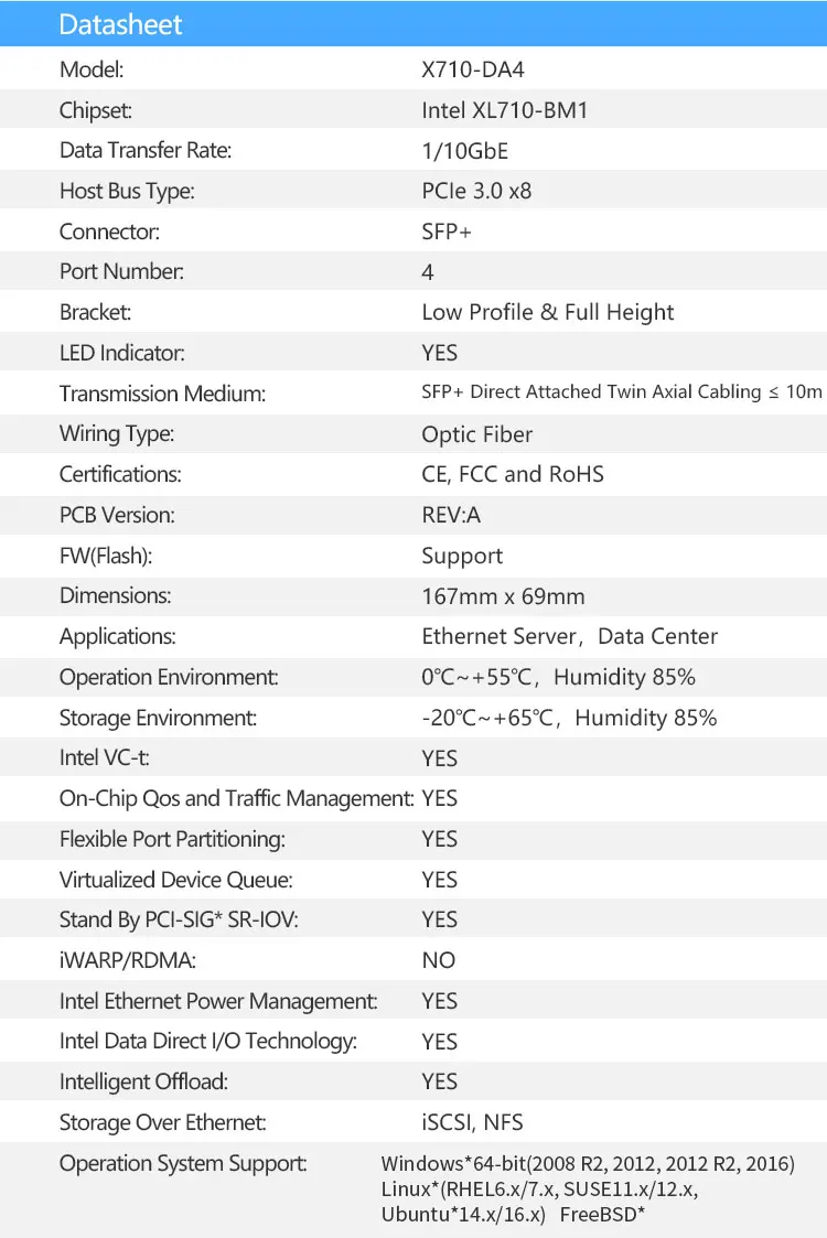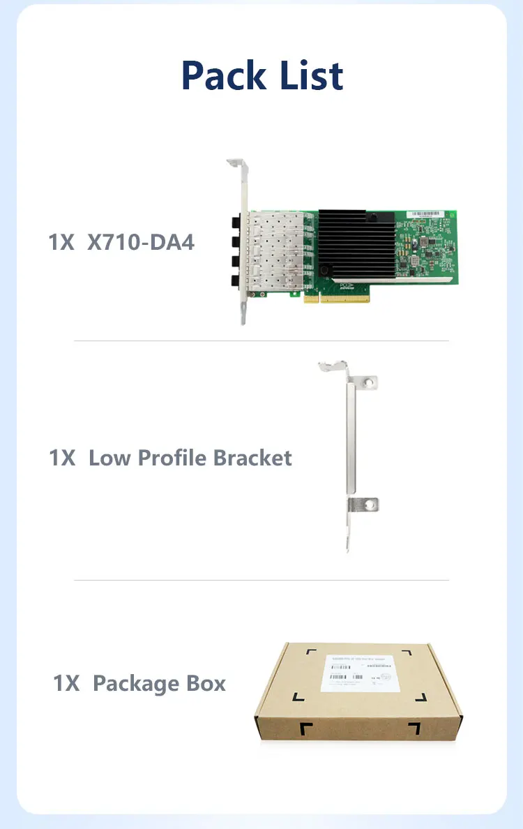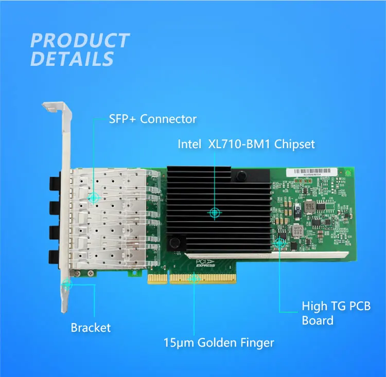 Comprar X710-DA4 Chipset Intel XL710-BM1, servidor Ethernet de 4 puertos, tarjeta de red PCI-E 3,0x8, perfil bajo y altura completa, 10G, SFP +