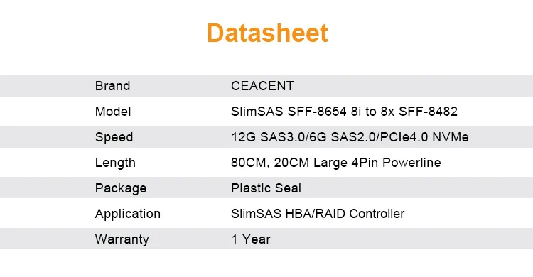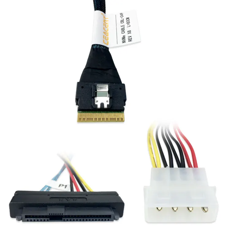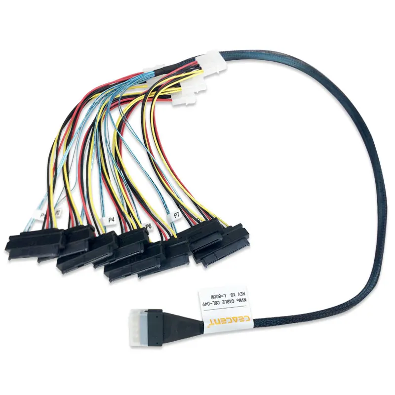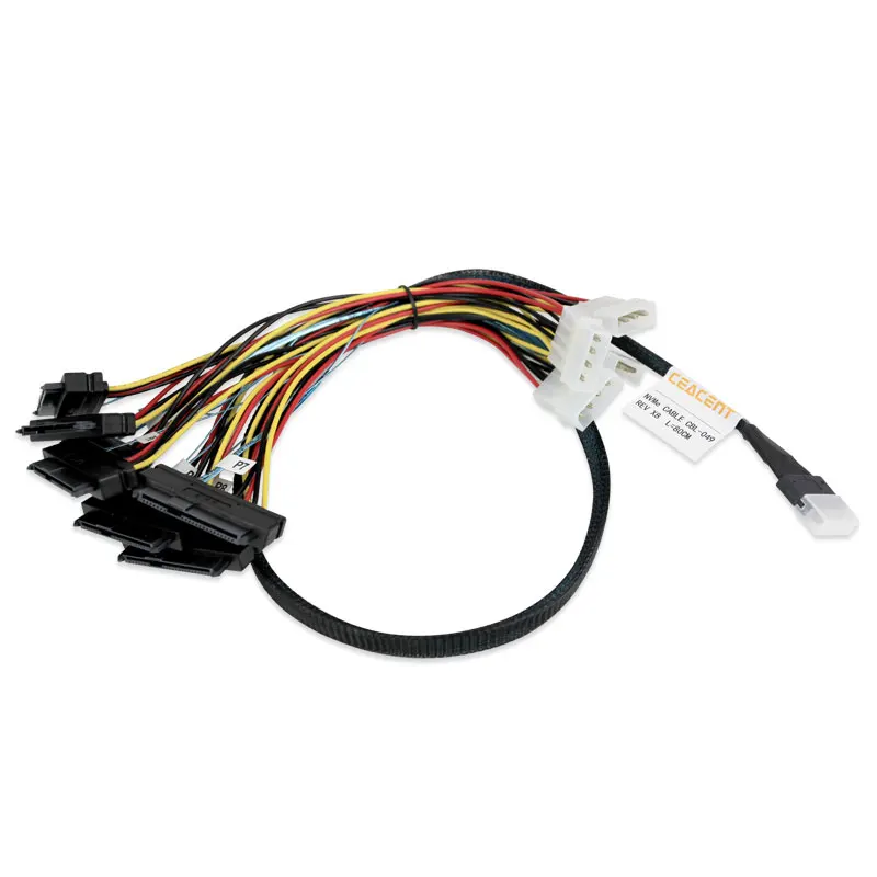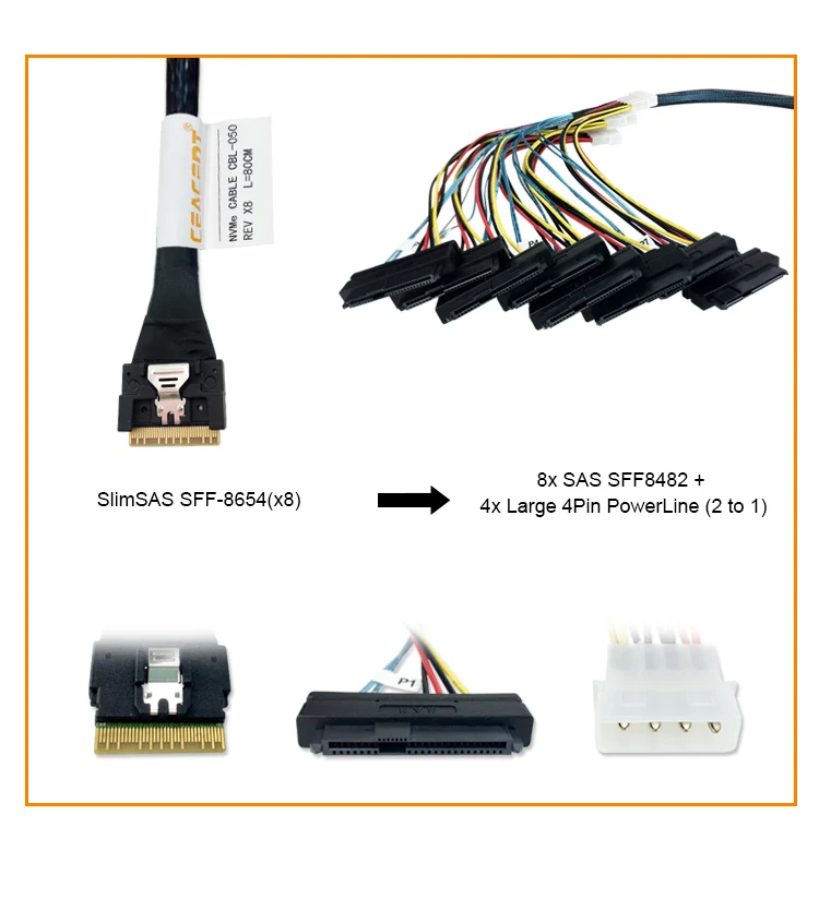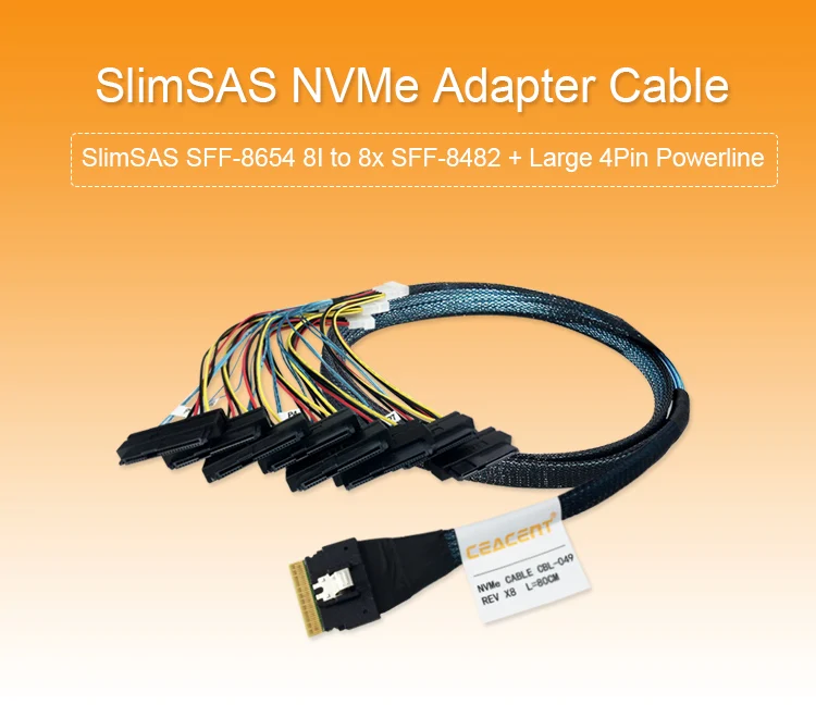 Comprar X8 Slim SAS SFF8654 a 8 Mini SFF8482 Cable NVMe PCIe 4,0 80CM de longitud w/ 20CM Power_Line grande 4Pin