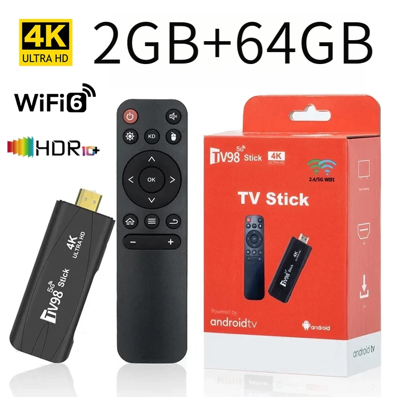 TV98 Smart TV Stick Allwinner H313 Android OS HD 4K 4G 5G WiFi 6 Caja de TV dual Android 12.1 2GB 64GB Reproductor multimedia TV