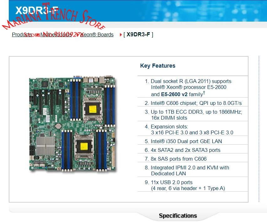 Comprar X9DR3-F para placa base Supermicro LGA2011 E5-2600 V1/V2 familia ECC DDR3 8x puertos SAS de C606