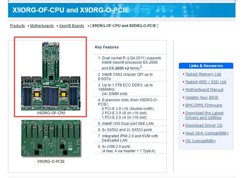 Comprar X9DRG-OF-CPU para placa base Supermicro Dual LGA2011 compatible con procesador Xeon E5-2600 v1/v2 familia i350 puerto Dual GbE LAN