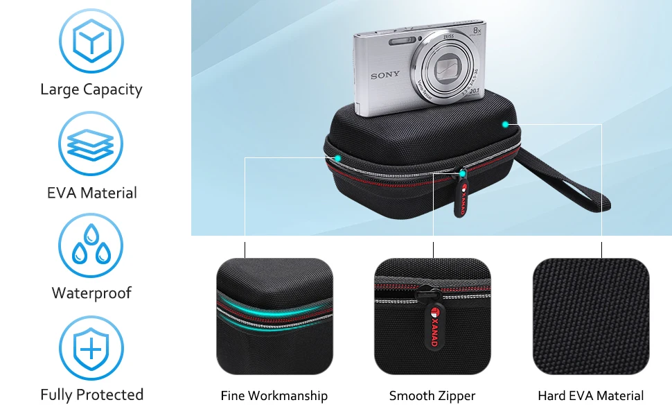 Comprar XANAD Estuche rígido EVA para Canon PowerShot ELPH 360/180/190 o Sony DSC W800/W830/w810 Cámara digital Protector de transporte Almacenamiento B