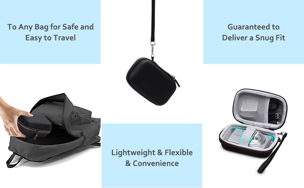·Estuche de transporte de viaje perfecto: viene con un asa cómoda, fuerte y resistente para sostener perfectamente su cámara digital y este estuche rígido es liviano y compacto para caber en su bolso, mochila o equipaje y conveniente para llevar a cualquier parte.