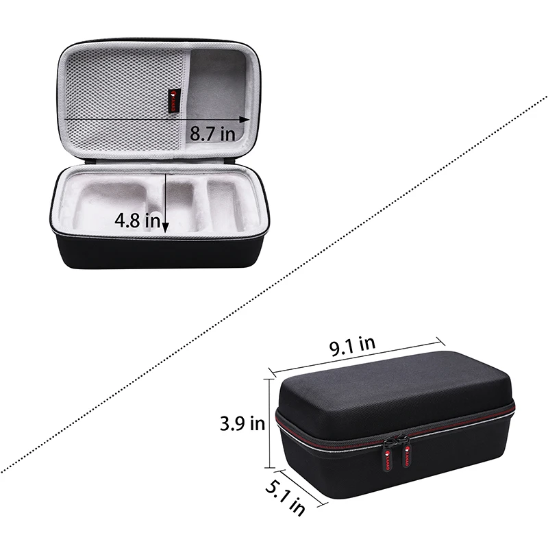 · 100% seguro: la correa de sujeción hace que las máquinas se fijen en la carcasa, el material EVA de calidad dura es semiimpermeable, a prueba de golpes y duradero para proteger las máquinas de impactos y salpicaduras.