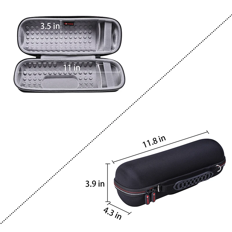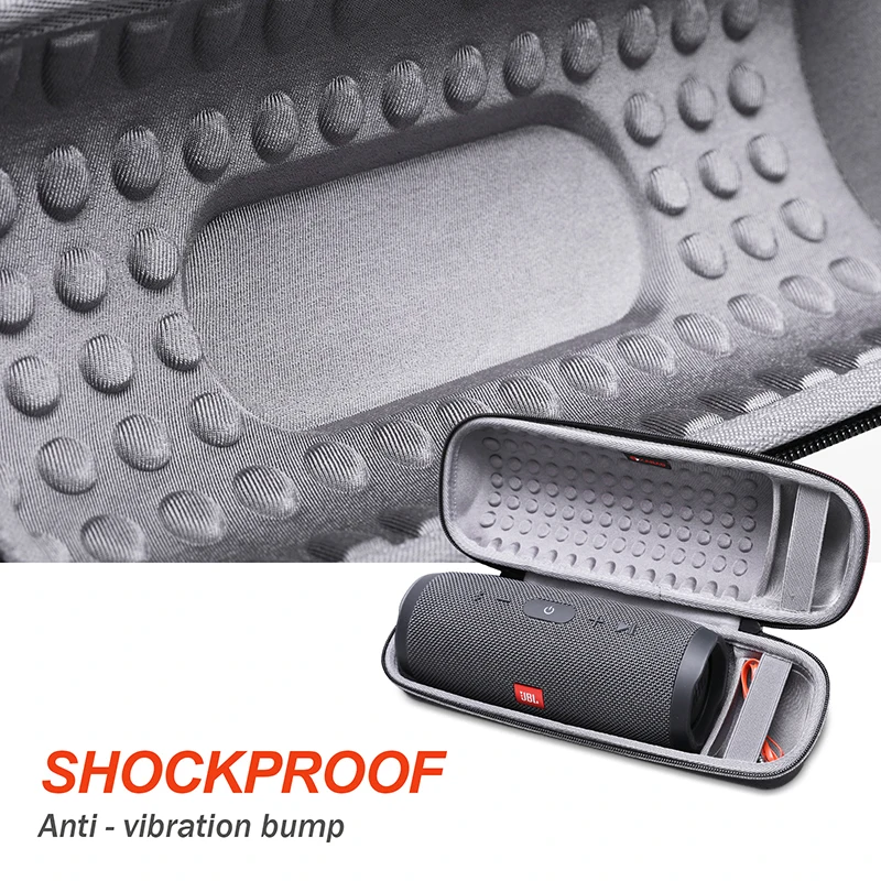 ·Seguridad: el material EVA duro es resistente a los golpes, al polvo y al agua para proteger su altavoz de impactos y salpicaduras.