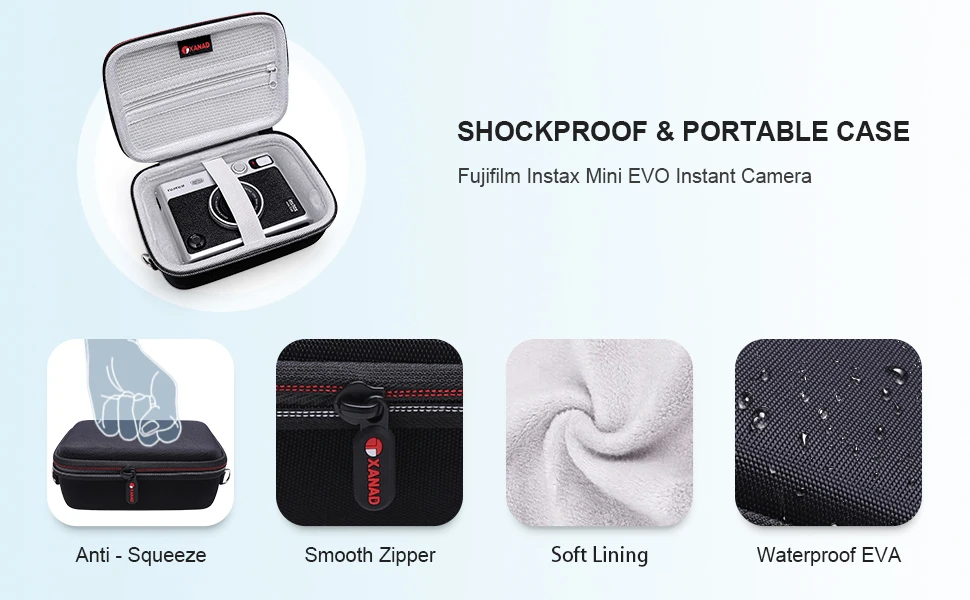 Comprar XANAD-funda rígida EVA para cámara instantánea Fujifilm Instax Mini EVO, bolsa de almacenamiento de transporte de viaje
