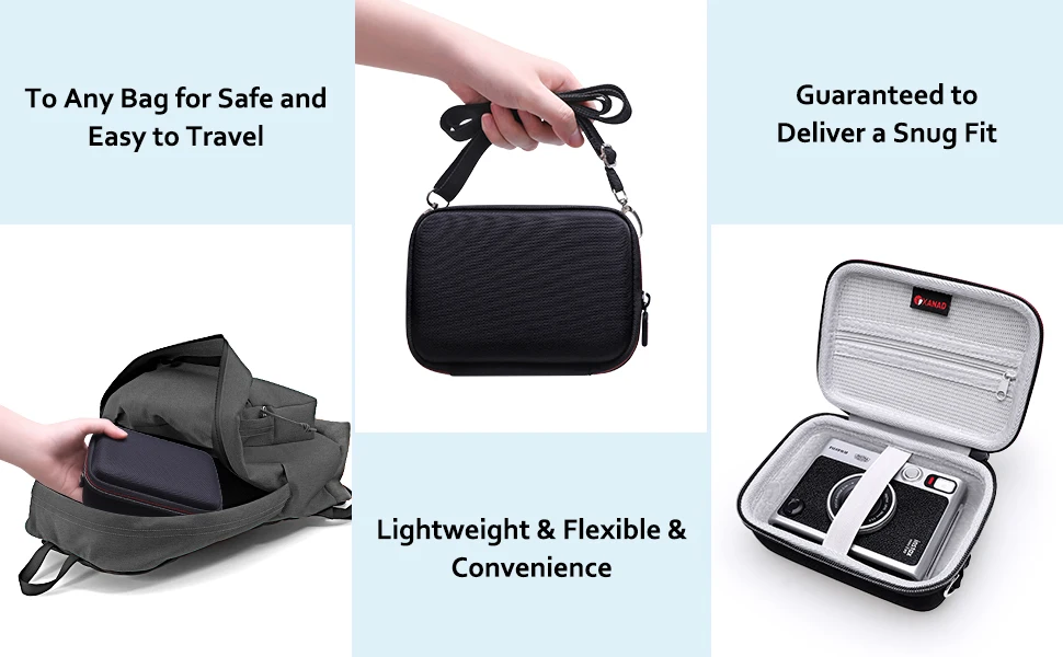 * Estuche de transporte de viaje perfecto: viene con un cómodo mango fuerte y resistente para sujetar perfectamente su cámara instantánea Fujifilm Instax Mini EVO y este estuche rígido es ligero y compacto para caber en su bolsa, mochila o equipaje y conveniente para llevar a cualquier lugar.