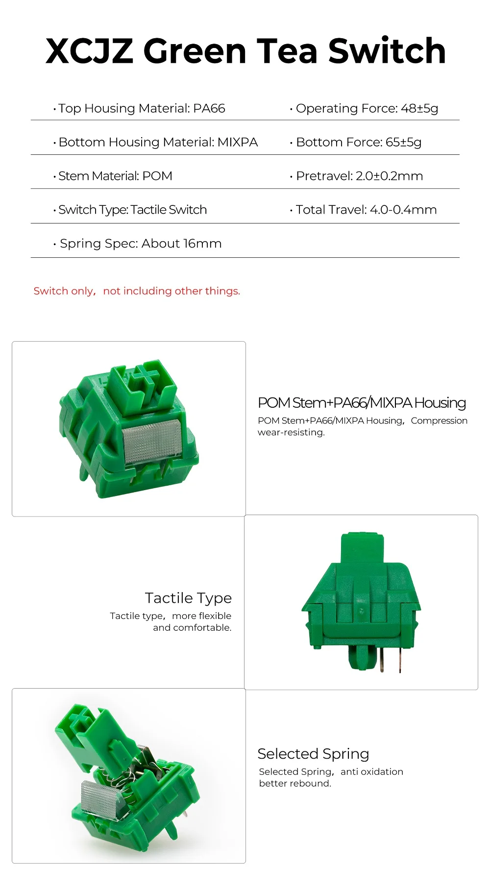Comprar XCJZ interruptor de té verde RGB SMD, interruptores táctiles Greentea, 48g, 65g, para teclado mecánico mx stem PA66 MIXPA POM, prelumado