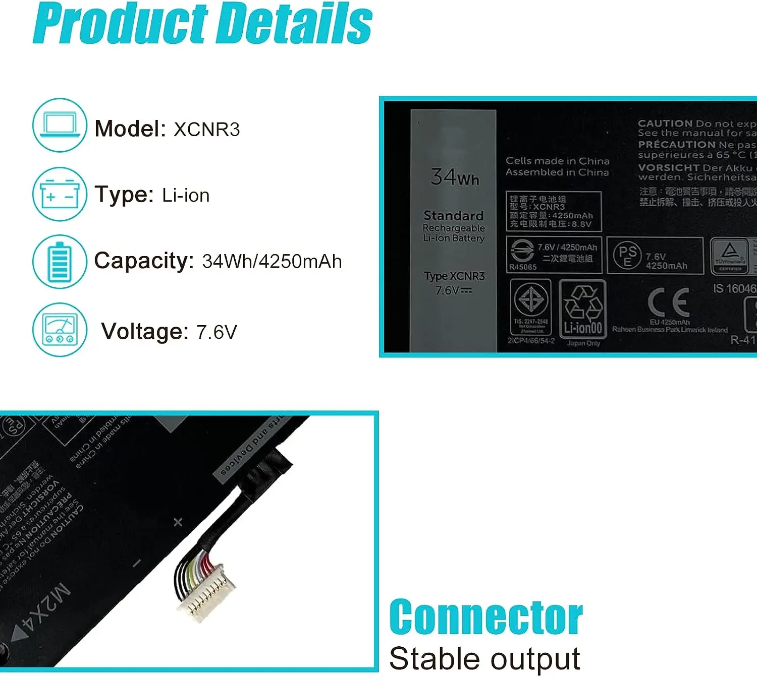 【Detalles básicos】 Modelo del artículo: XCNR3; Tipo de batería: Li-ion; Voltaje: 7,6 V; Capacidad: 34Wh/4250mAh; Color de la batería: Negro.