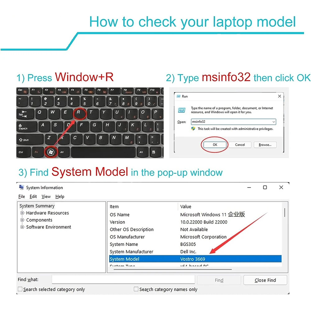 Le sugerimos que abra la carcasa de su portátil para verificar y confirmar el modelo y la apariencia de su batería original, en comparación con nuestra imagen de la batería, asegúrese de que eso es lo que necesita. Especialmente la ubicación y el tipo de conector, la longitud del cable (largo o corto, etc.).