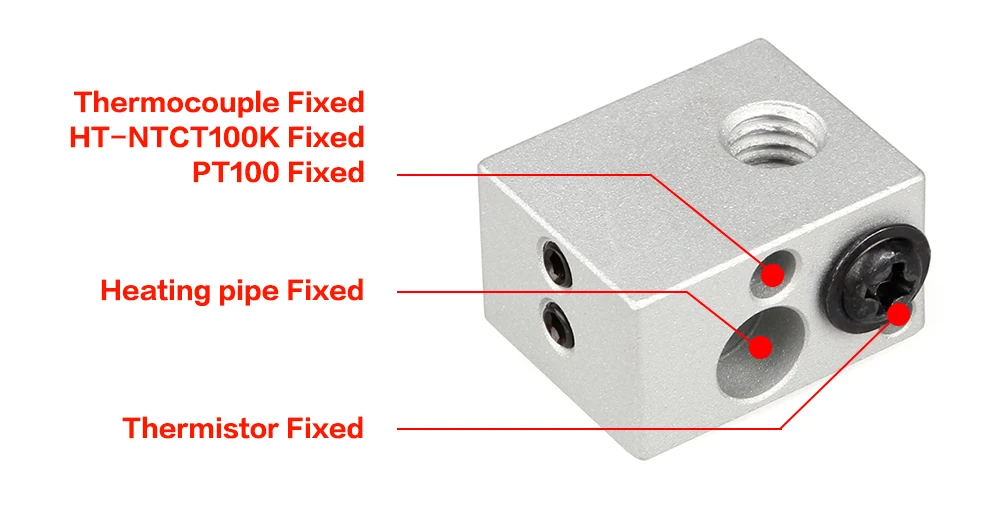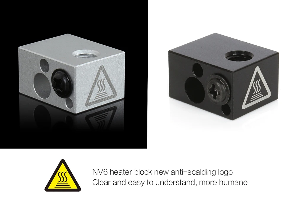 4.El bloque calefactor NV6 utiliza el tornillo de gato para fijar los calentadores, lo que resuelve los problemas de que el bloque calefactor V6 se fija con el tornillo largo y el aluminio hace que el tornillo se suelte fácilmente, el calentador no se puede sacar y no es fácil de desmontar.
